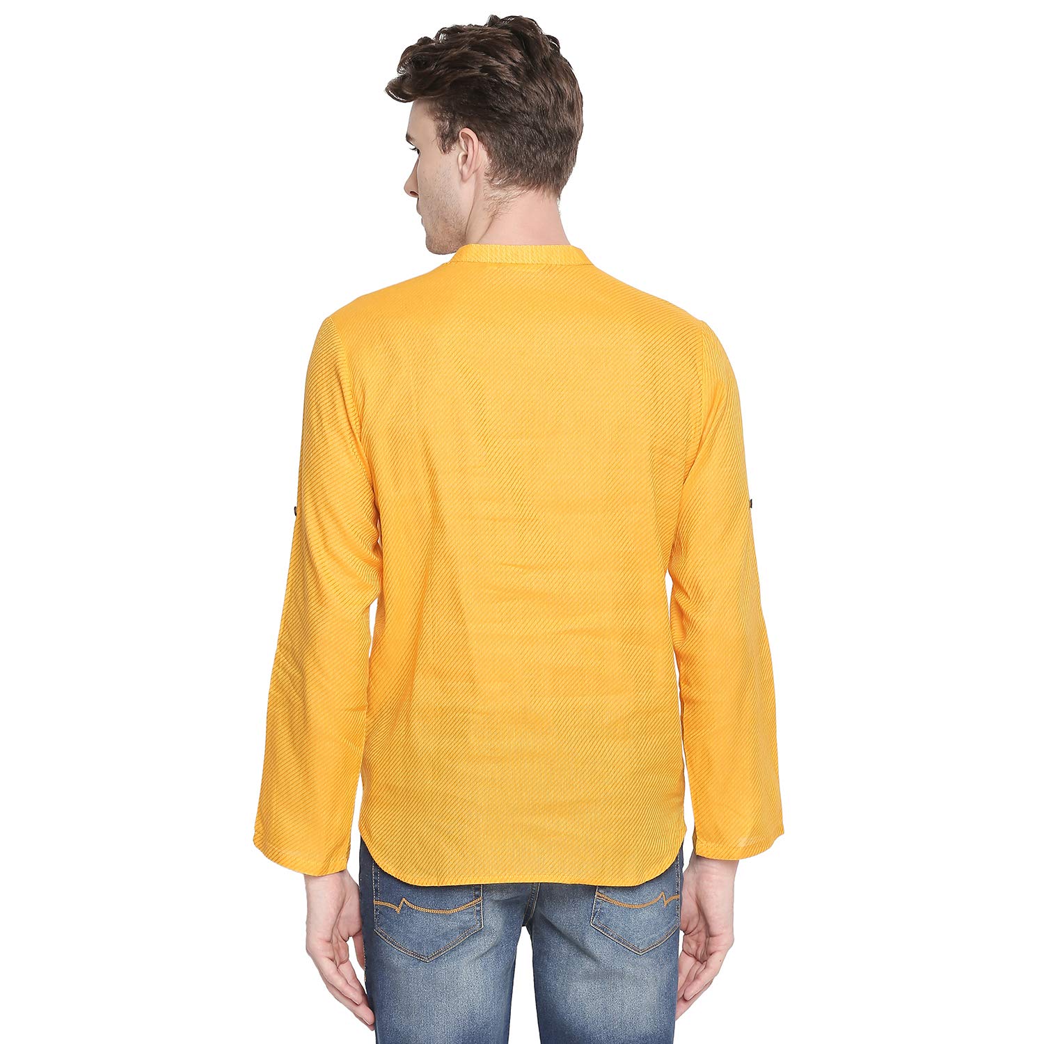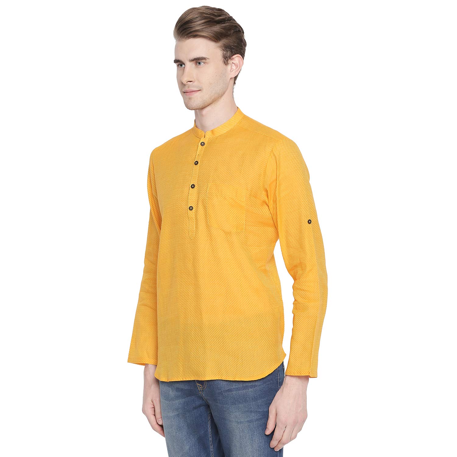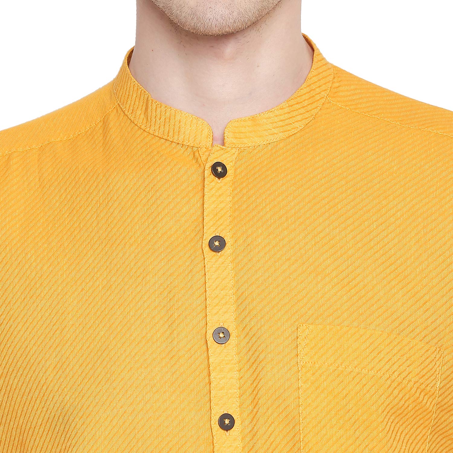 Mustard coloured kurta for men Made out of cotton fabric featuring a self Design pattern along with comfort fit.