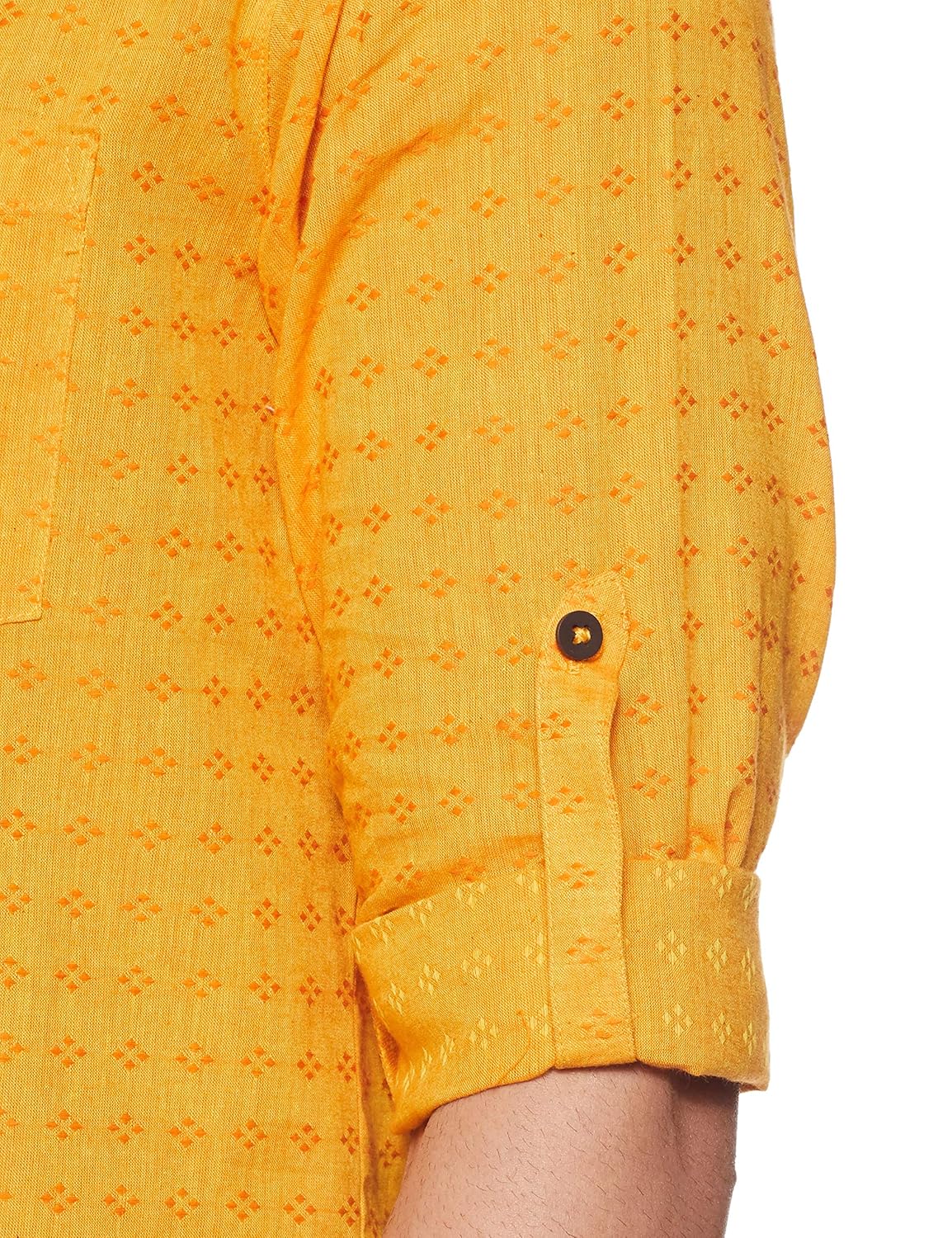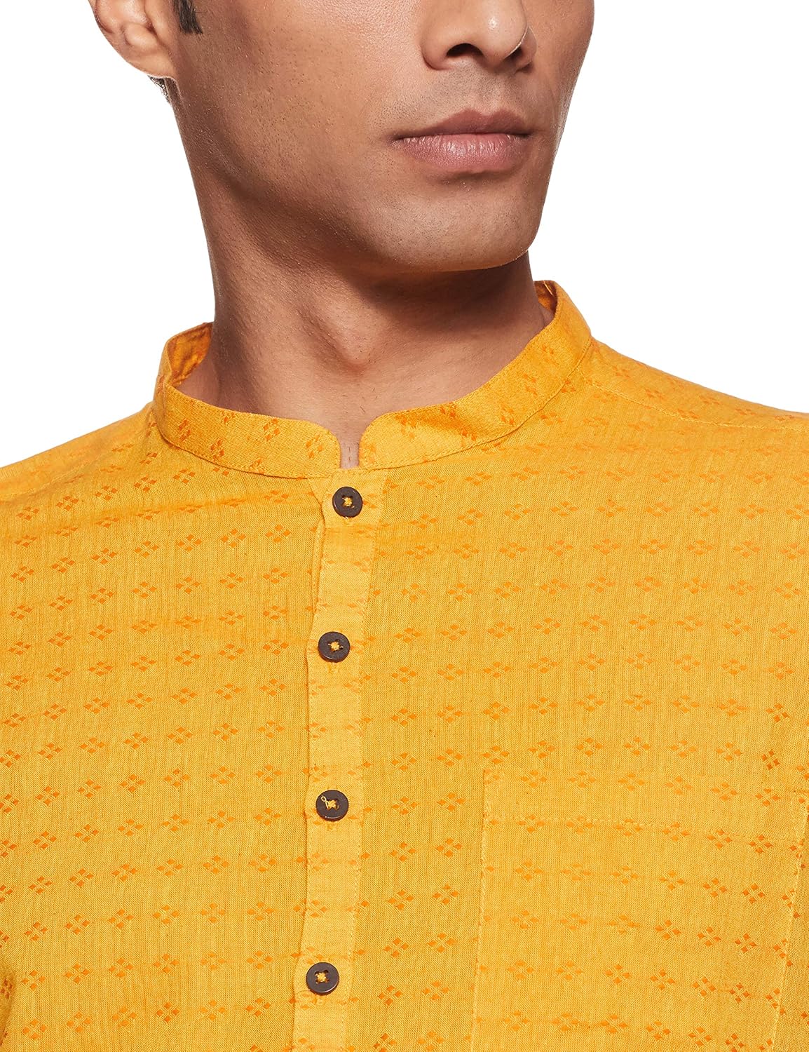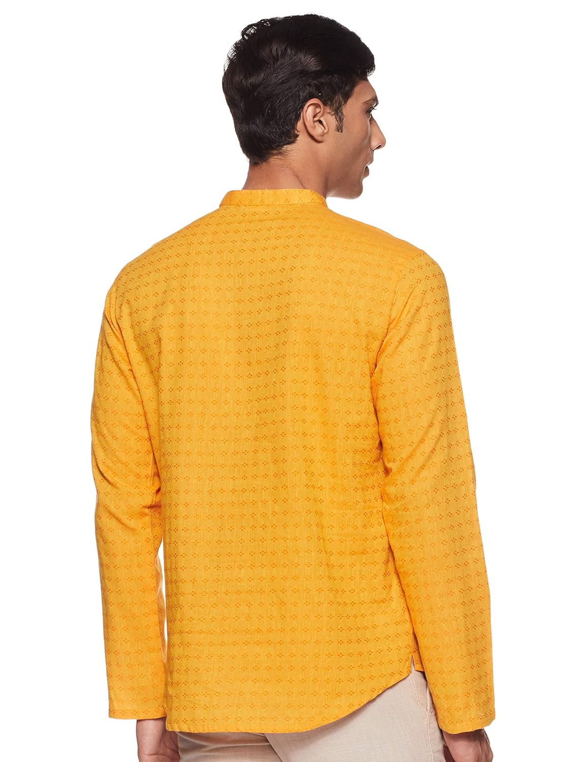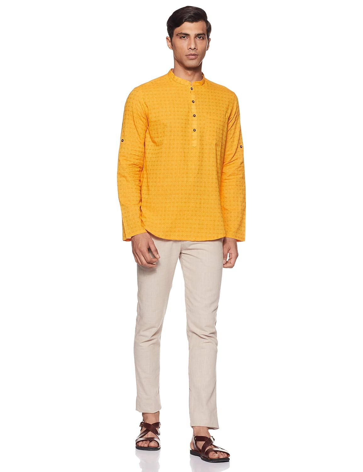 Mustard coloured kurta for men Made out of cotton fabric featuring a self Design pattern along with comfort fit.