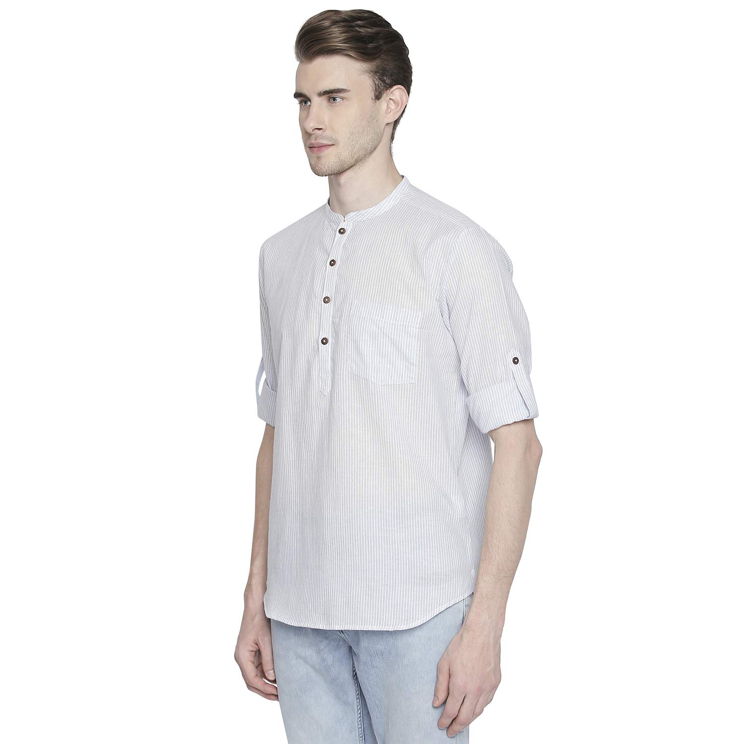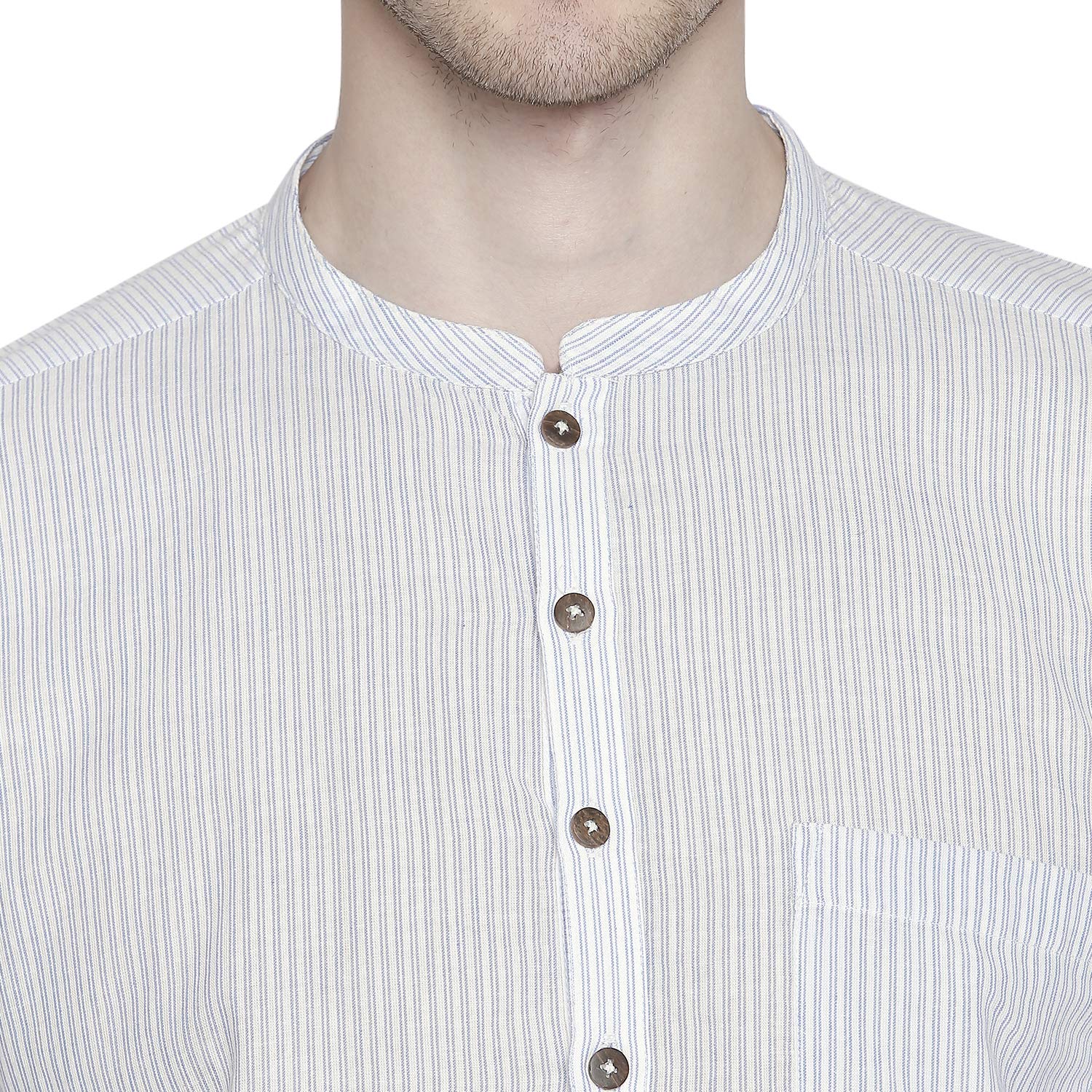 Pastel Blue coloured kurta for men Made out of cotton fabric featuring a self Design pattern along with comfort fit. |