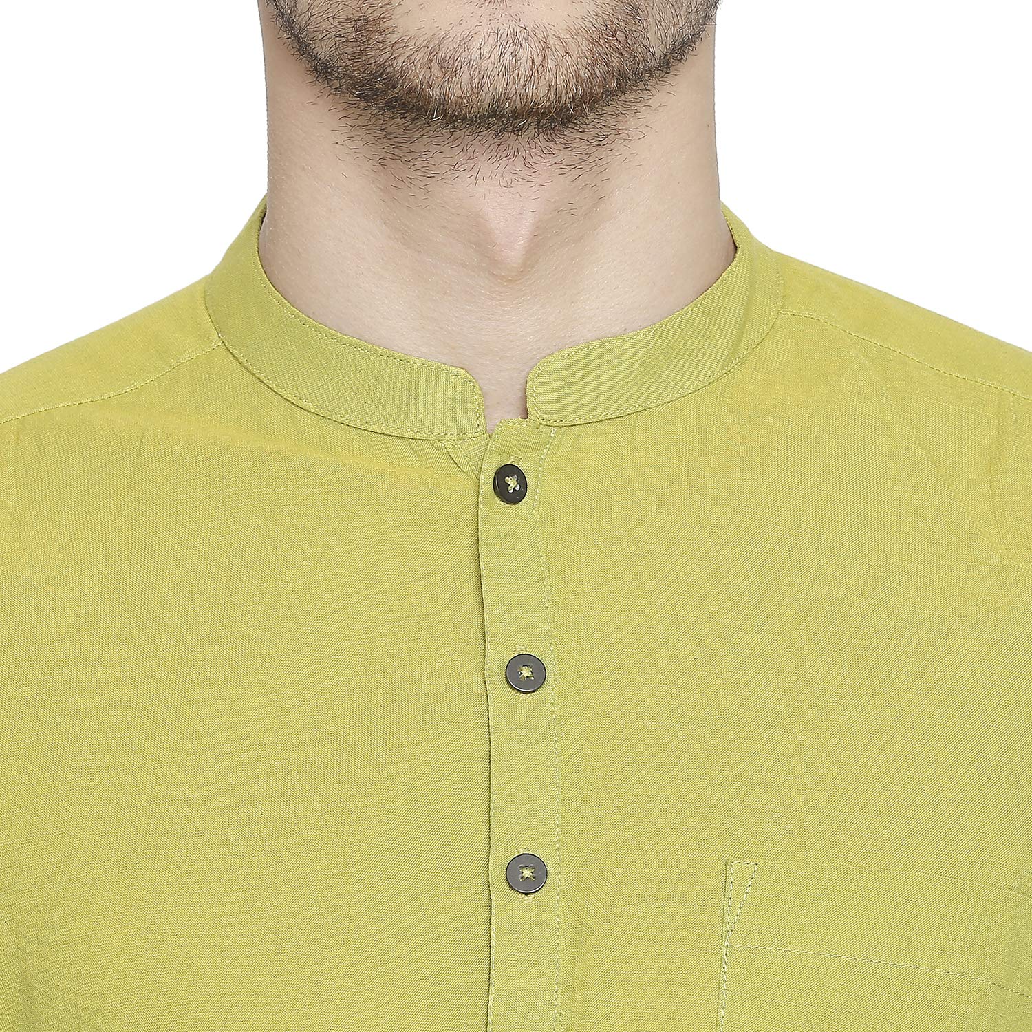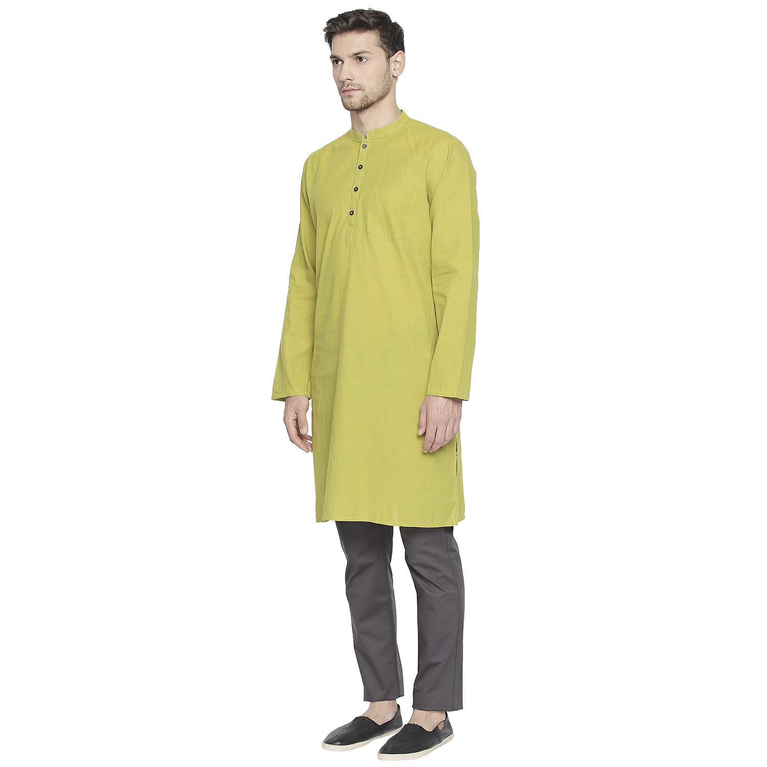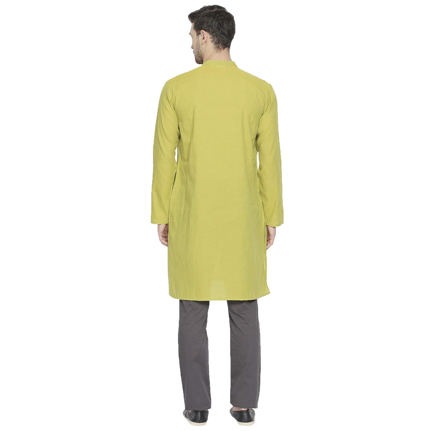 Lime Green coloured kurta for men Made out of cotton fabric featuring a solid pattern along with comfort fit.