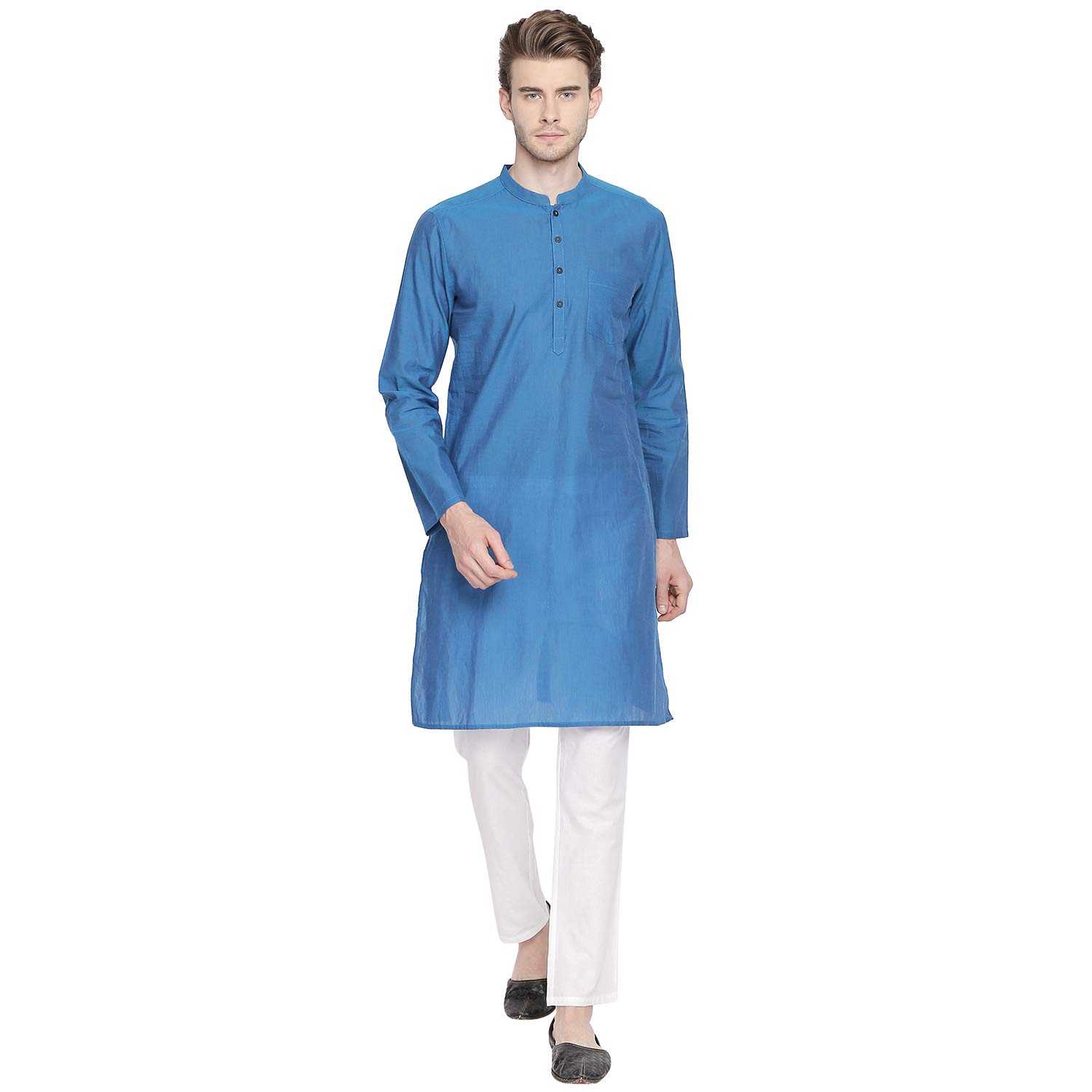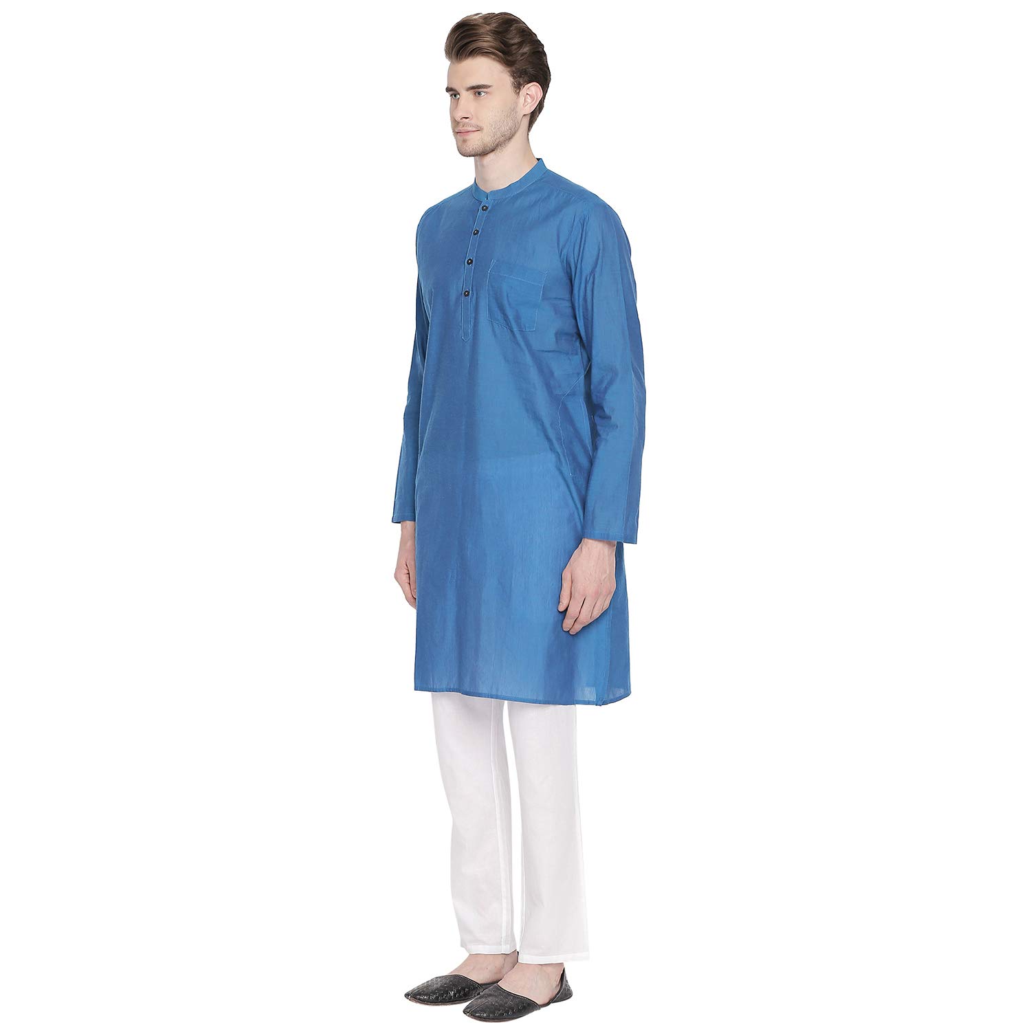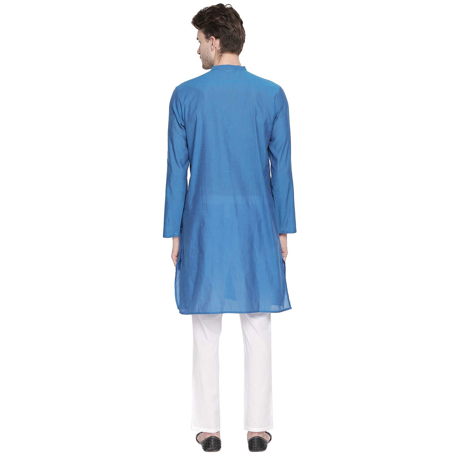 Blue coloured kurta for men Made out of cotton fabric featuring a solid pattern along with comfort fit.