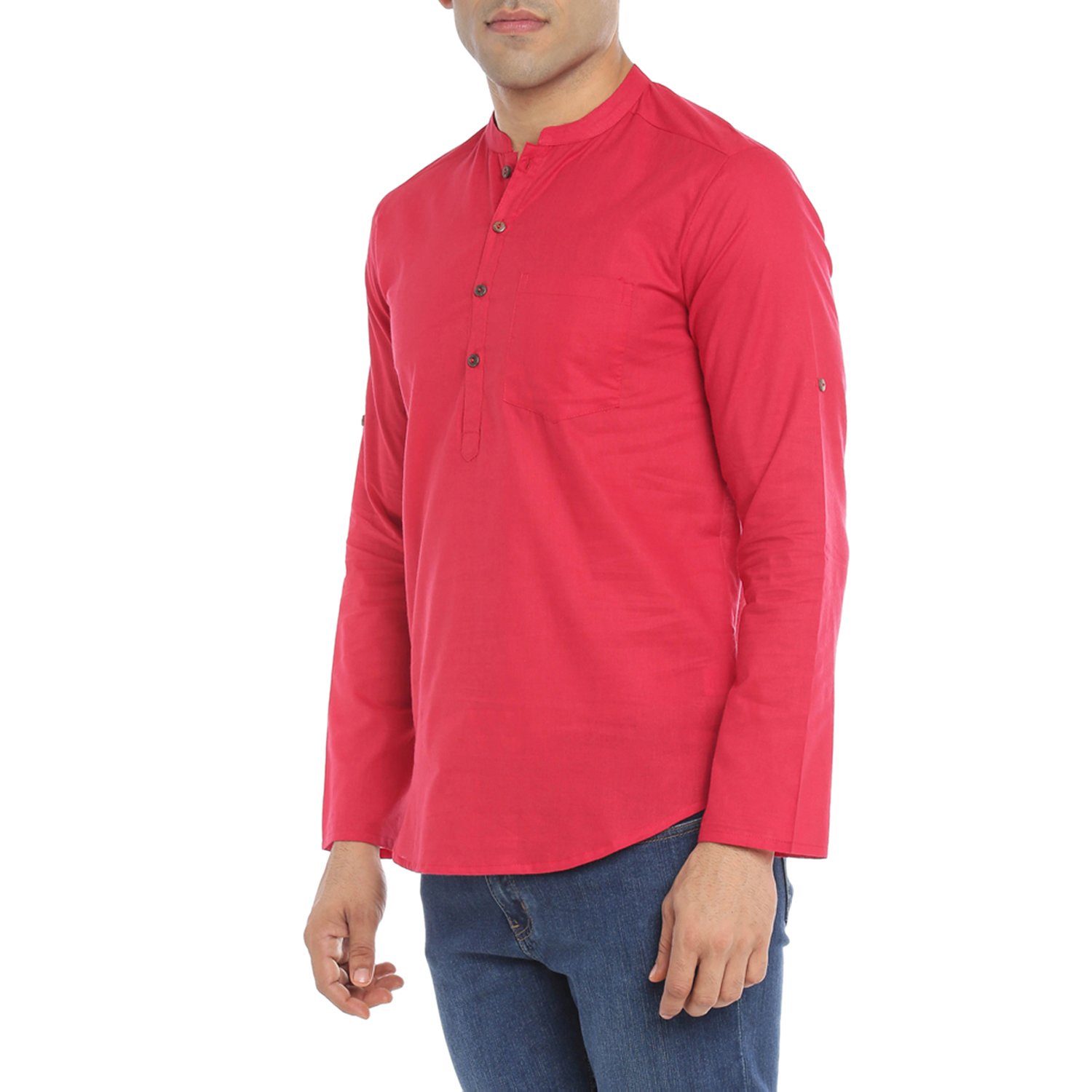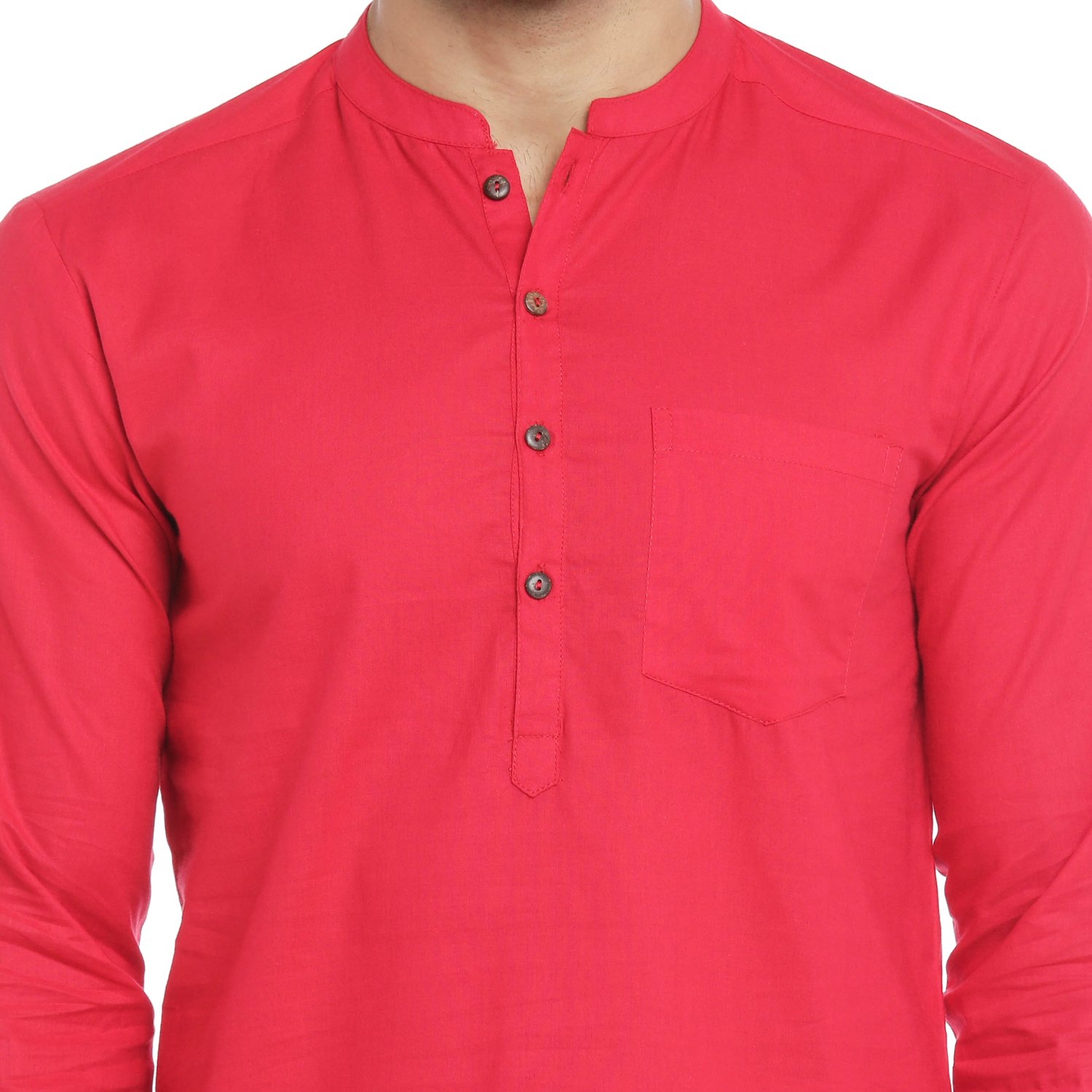 Red coloured kurta made out of cotton fabric featuring a solid pattern and a slim fit.