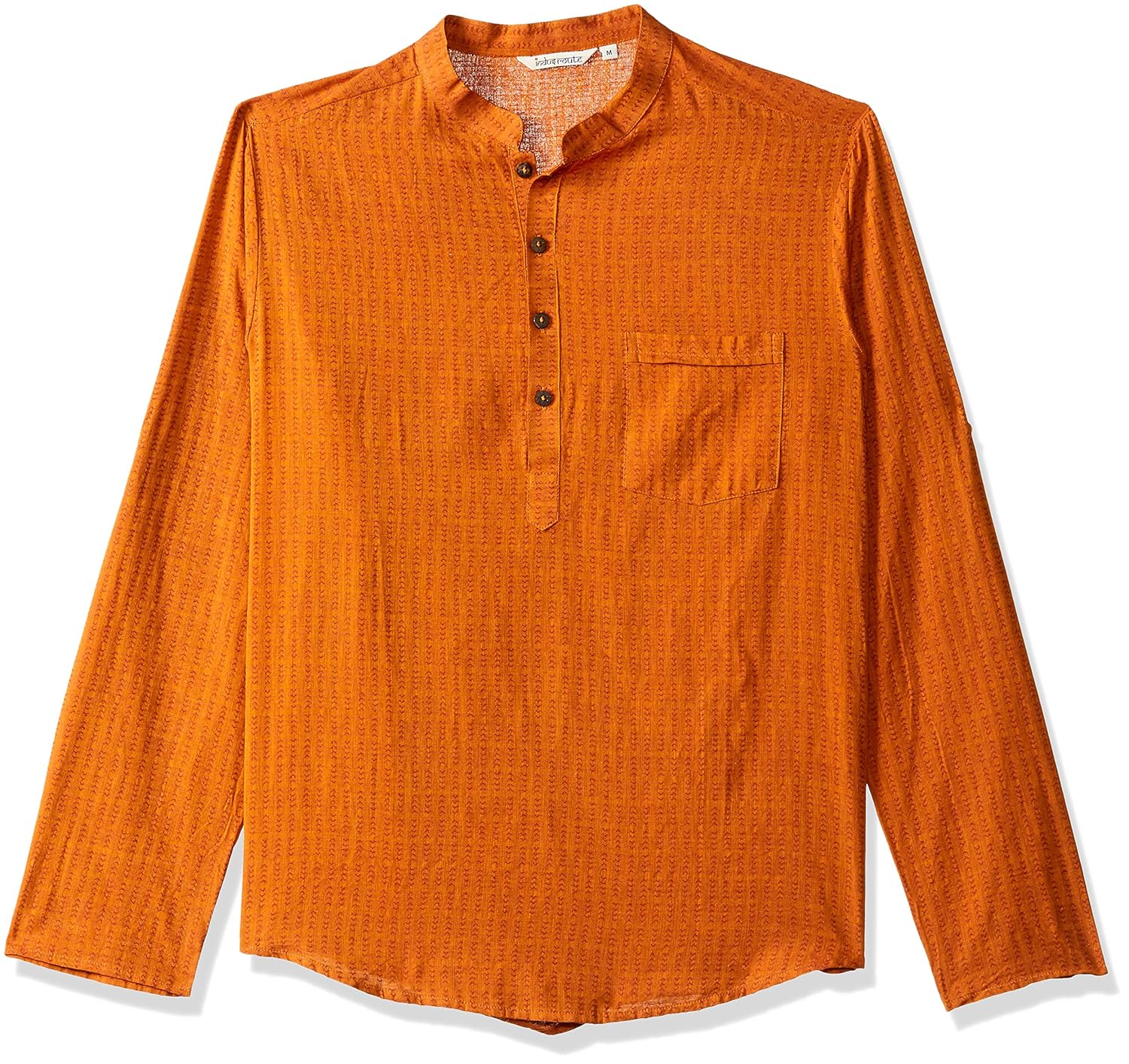 Rust in colour, this kurta is made of cotton. this slim-fit kurta features contrasting print all over, band collar, full sleeves and a single chest pocket. |
