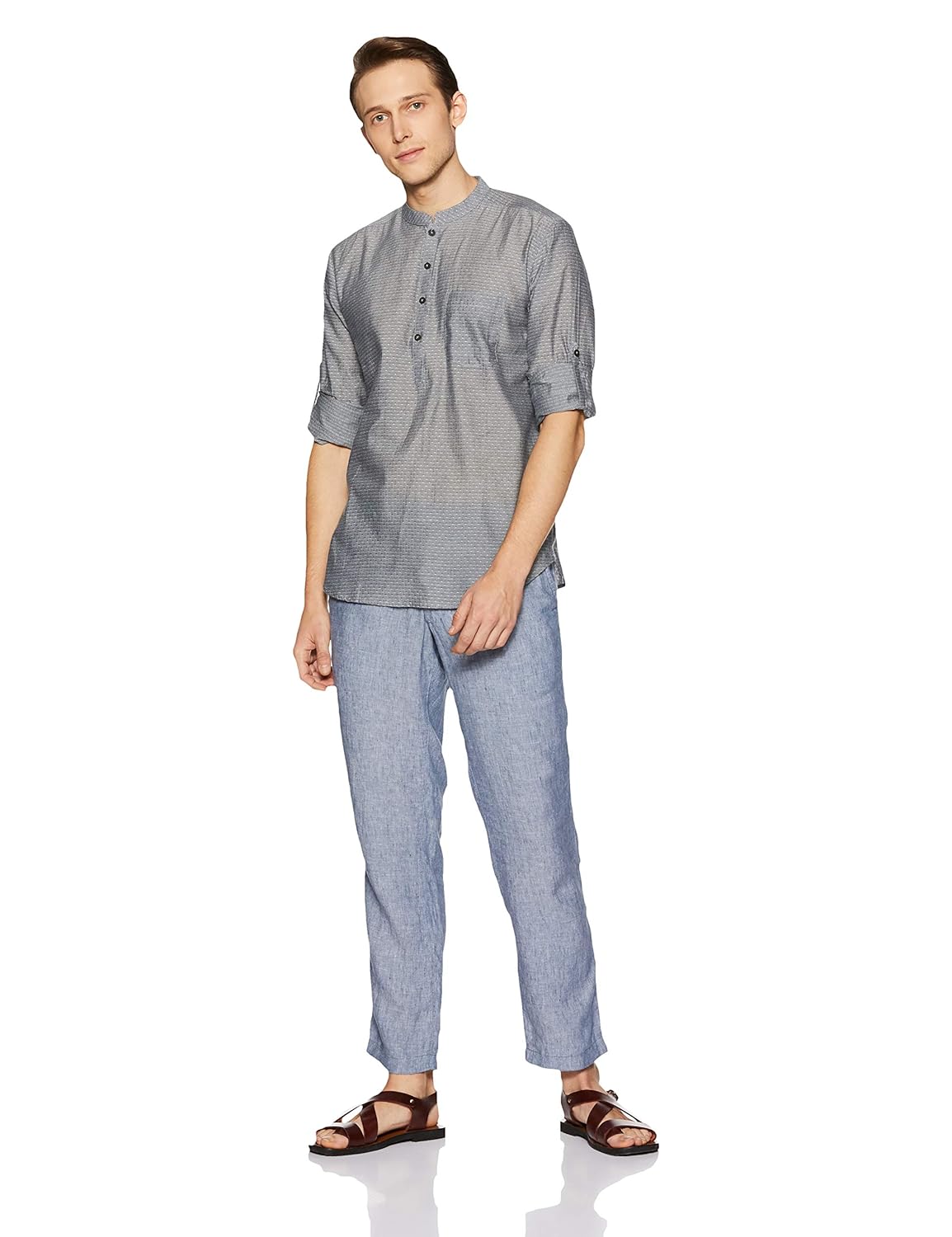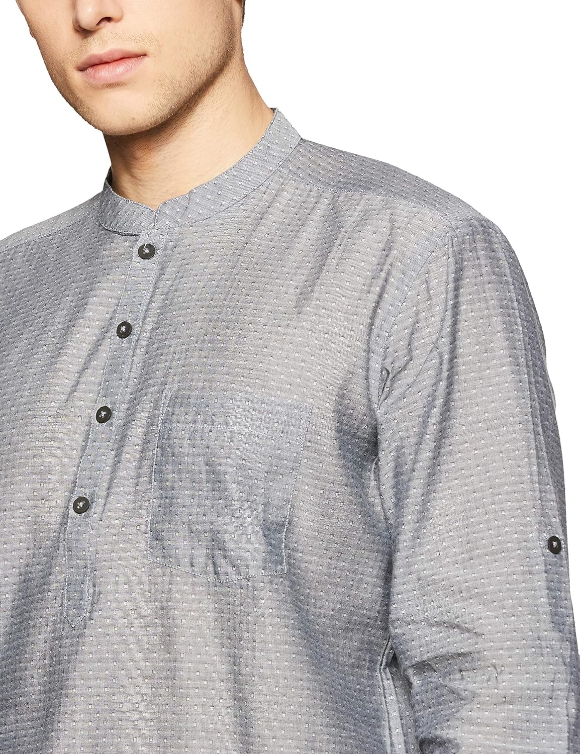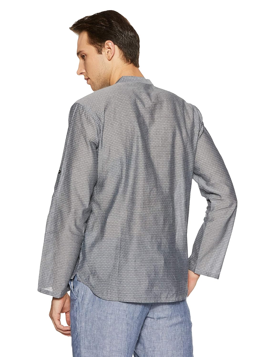 Charcoal coloured self designed kurta, featuring full sleeves, mandarin collar and regular fit pattern. Made from superior quality fabric for maximum comfort. |