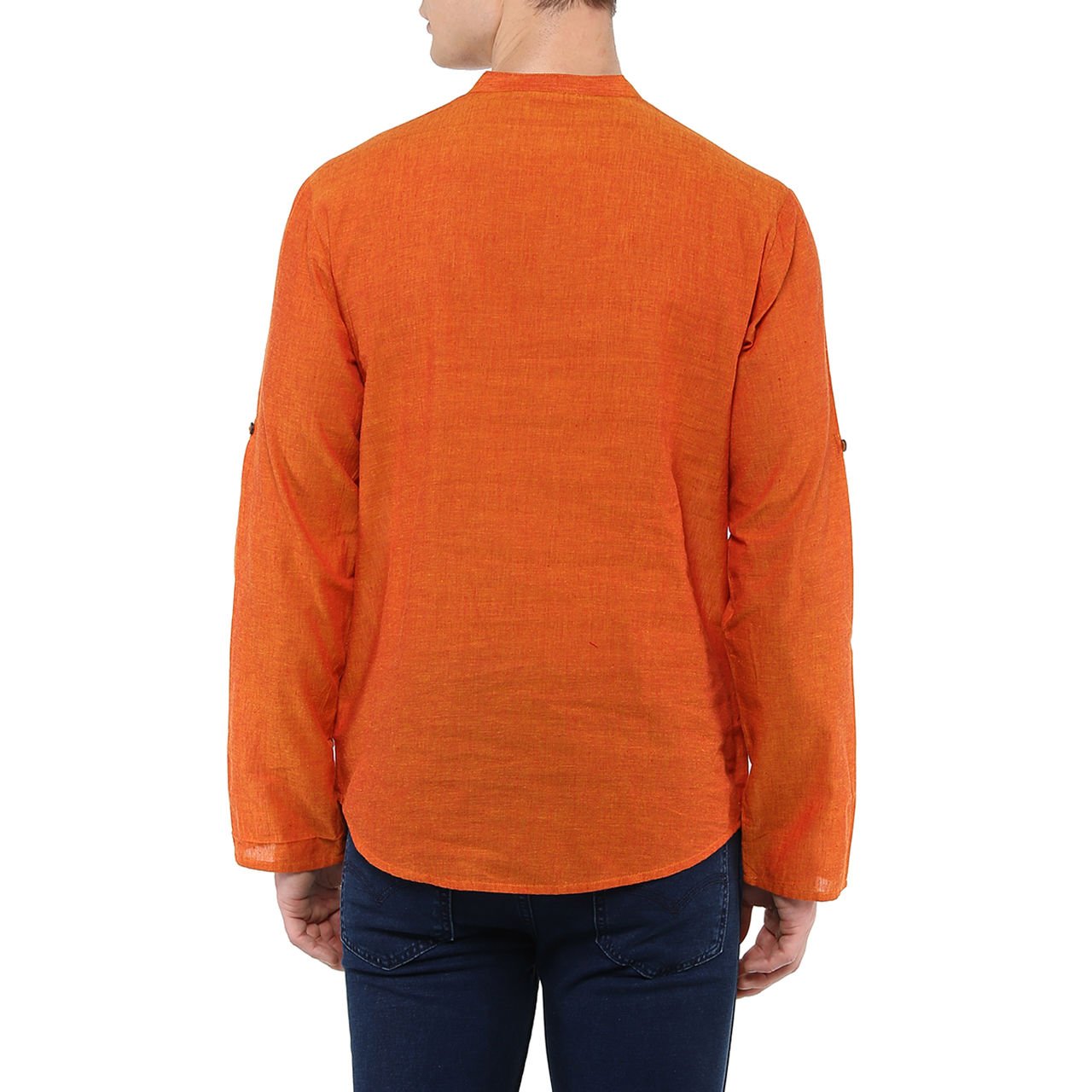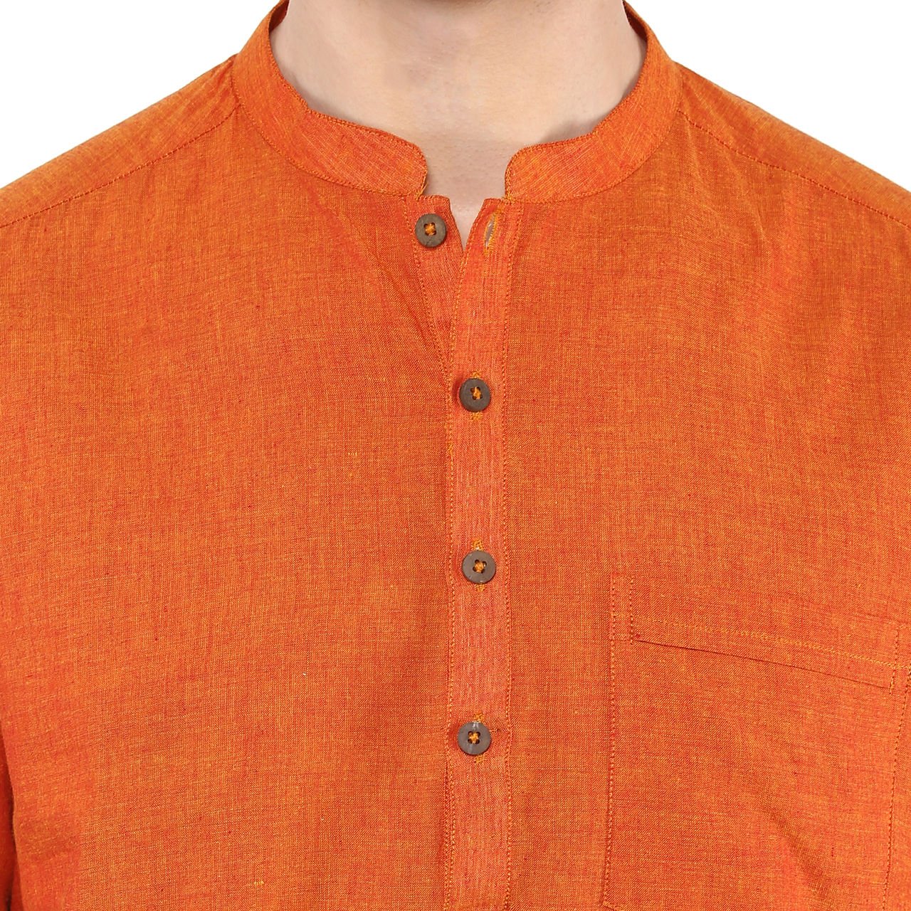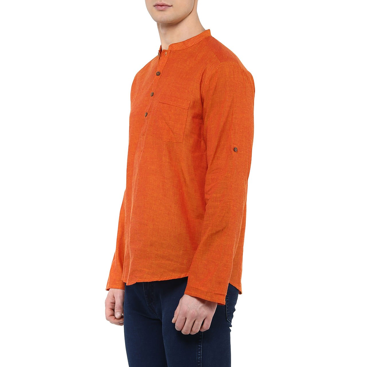 Rust in colour, this kurta is made of cotton. this slim-fit kurta features solid pattern, band collar, full sleeves and a single chest pocket. |