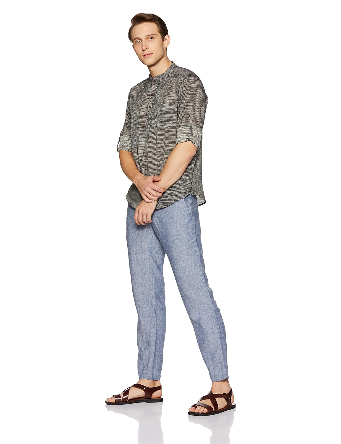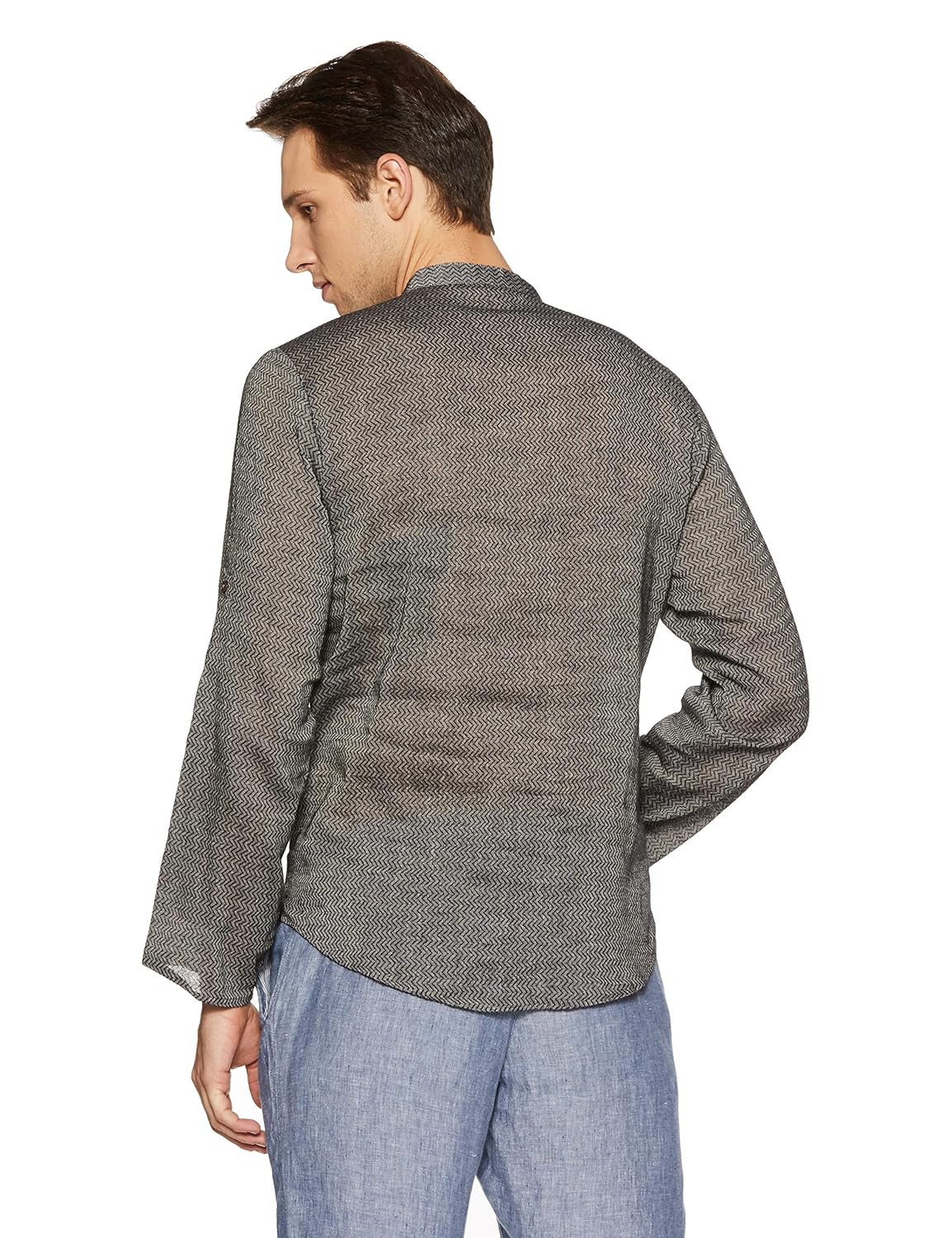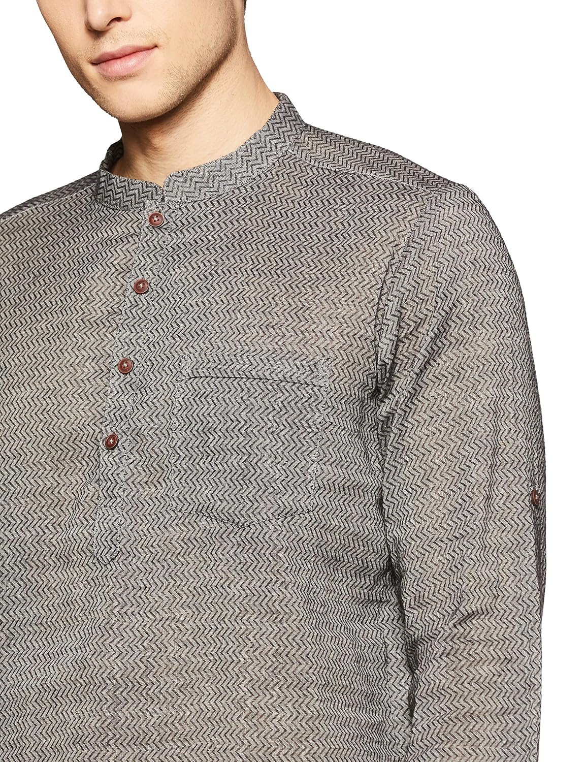 Black coloured self designed kurta, featuring full sleeves, mandarin collar and regular fit pattern. Made from superior quality fabric for maximum comfort. |