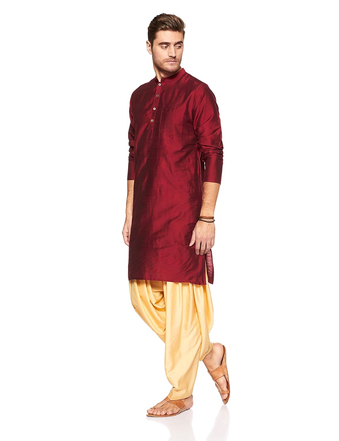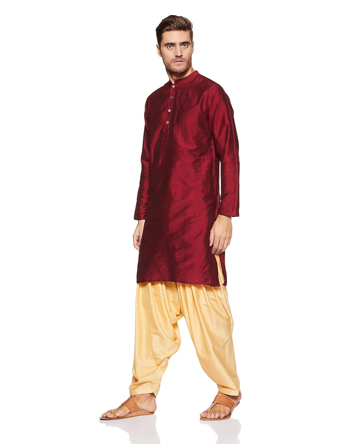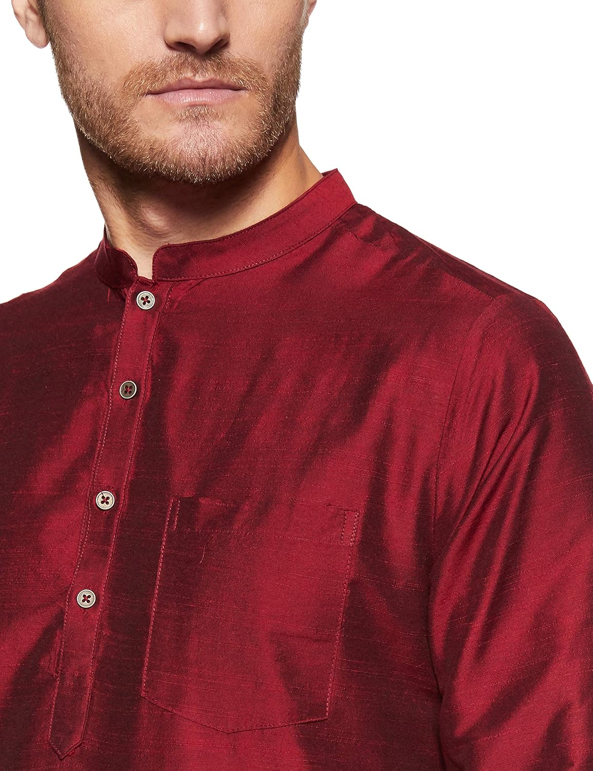Maroon coloured solid kurta, featuring full sleeves, mandarin neck and regular fit pattern. Made from superior quality fabric for maximum comfort. |