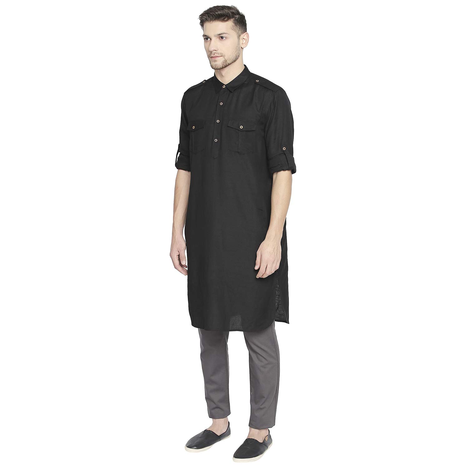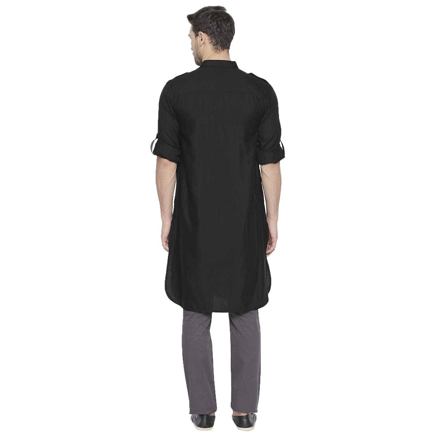 Black coloured pathani for men Made out of rayon fabric featuring a solid pattern along with comfort fit.
