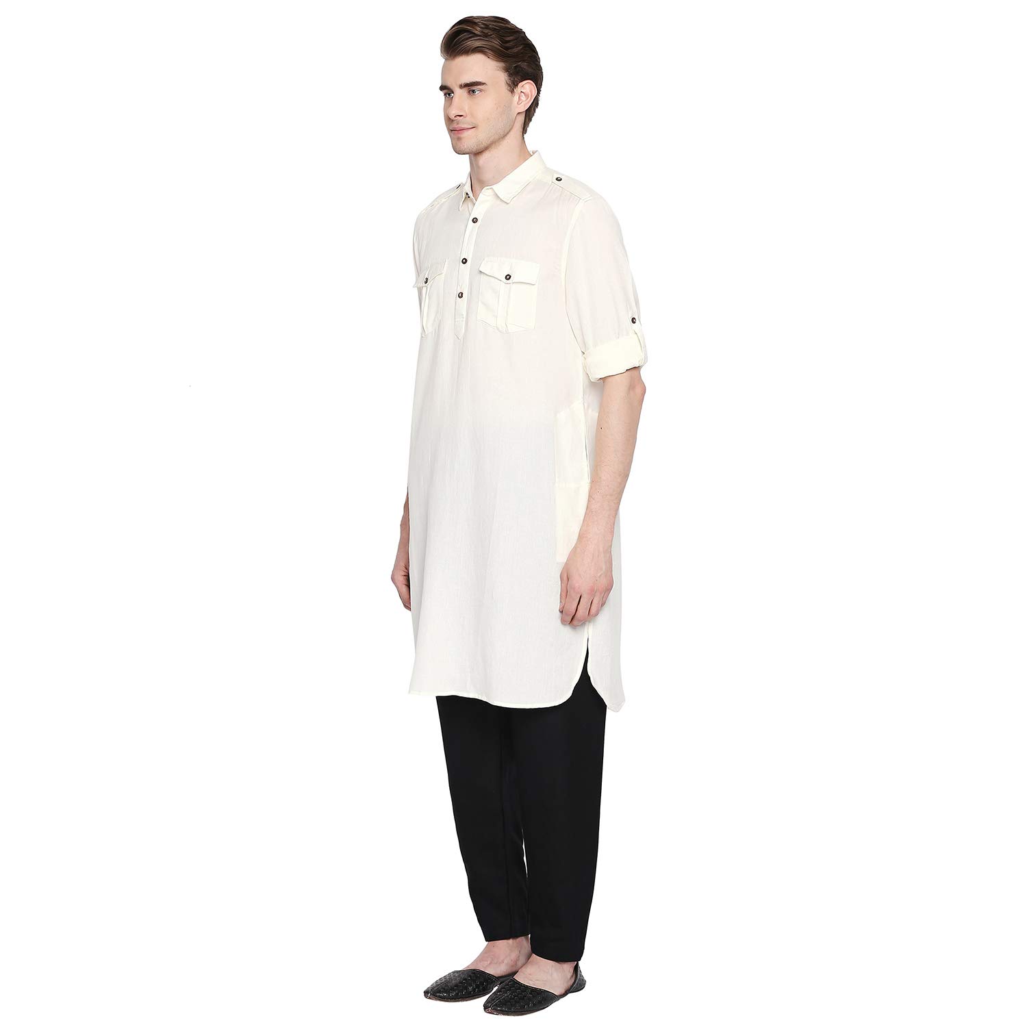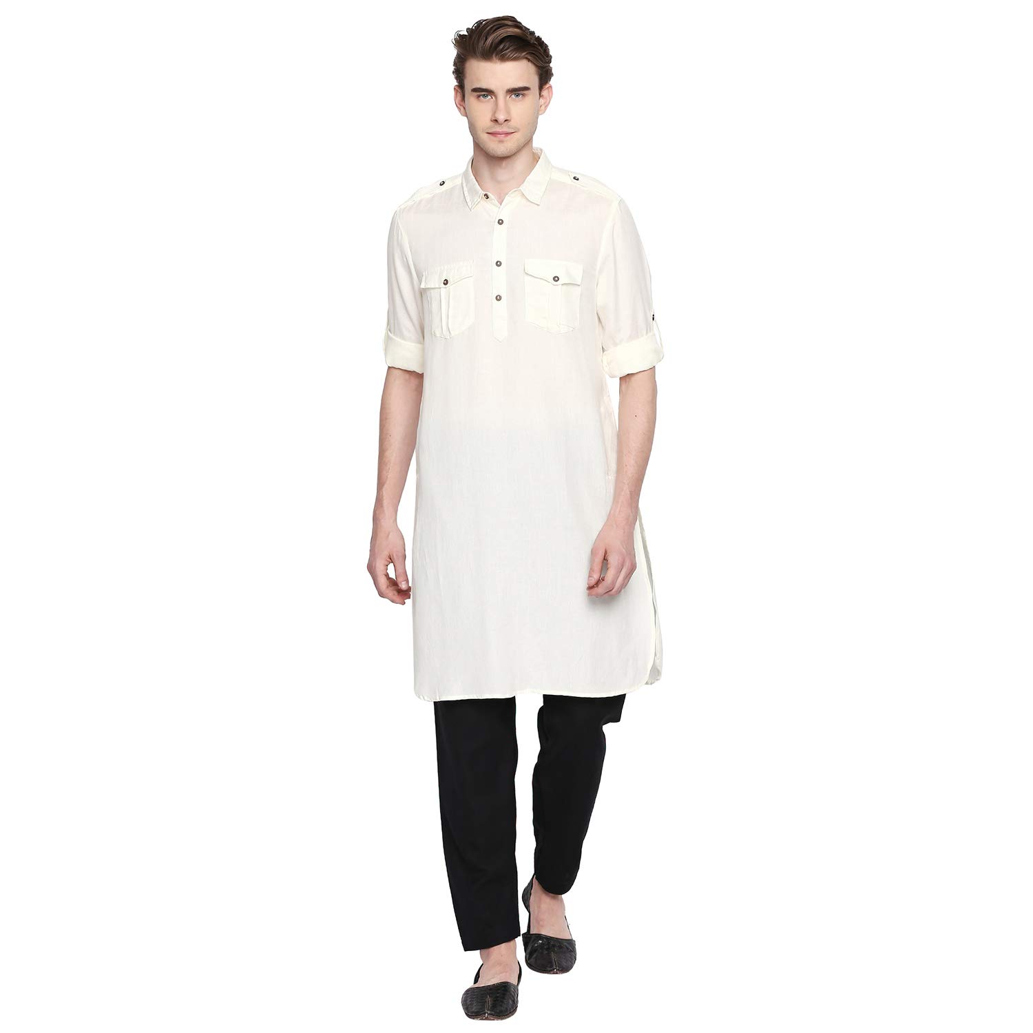 Off White coloured pathani for men Made out of rayon fabric featuring a solid pattern along with comfort fit.