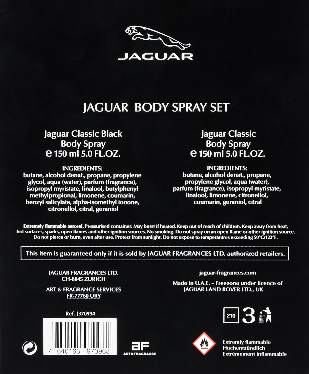 Jaguar Deo, Classic Black, 150ml and Deo, Classic, 150ml