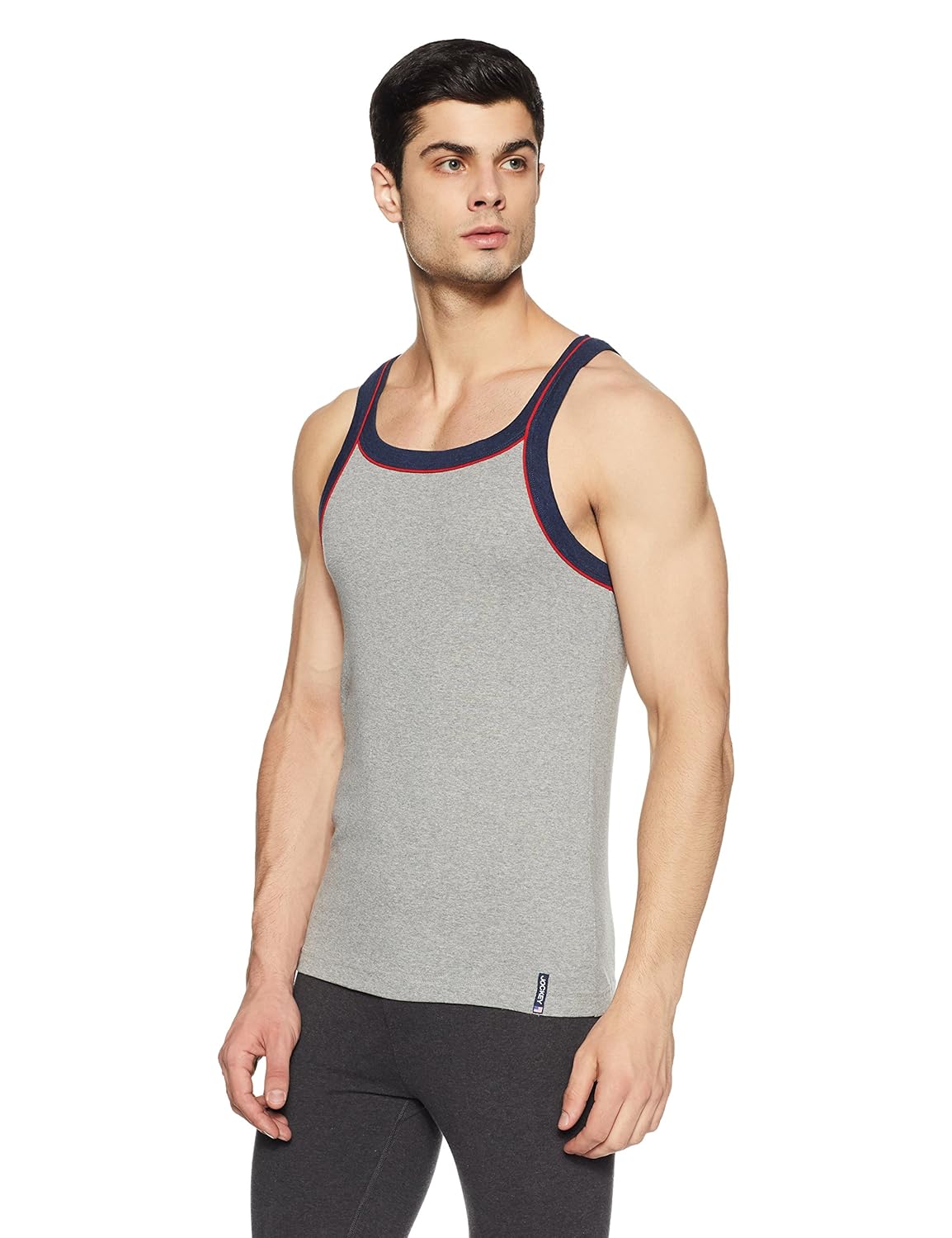 Super combed cotton rib fabric, usa originals back panel placement print, square shaped neckline with contrast binding and piping, contoured armhole, to be worn as loungewear, innerwear and sportswear - for all purpose, label free for all day comfort. |