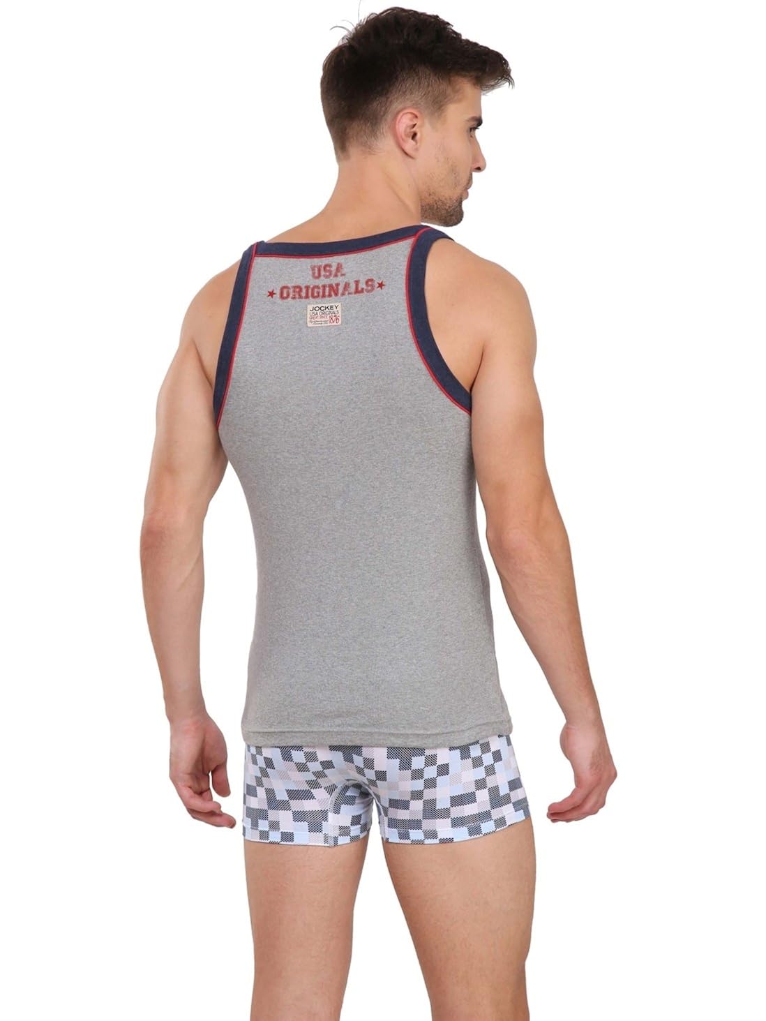 Style Number : US54 Collection Name : USA Originals Super Combed Cotton rib fabric . USA originals back panel placement print. Square shaped neckline with contrast binding and piping. Contoured armhole. To be worn as loungewear, innerwear and sportswear - for all purpose. Label free for all day comfort. |