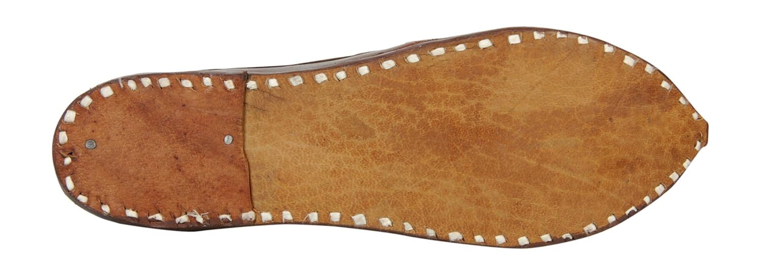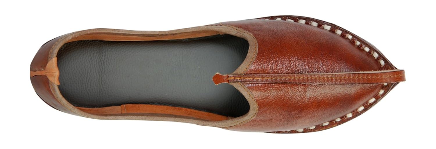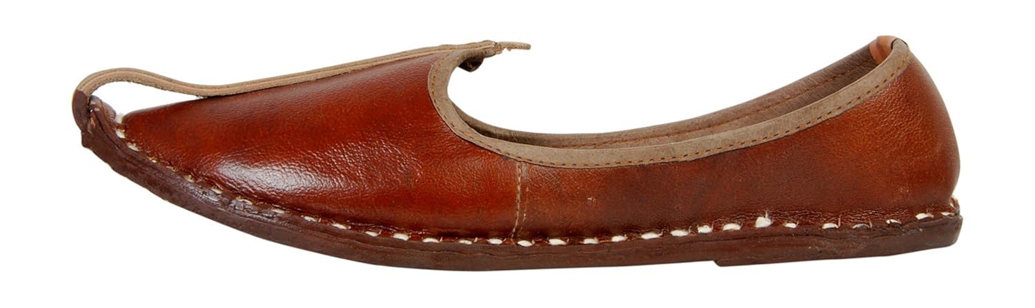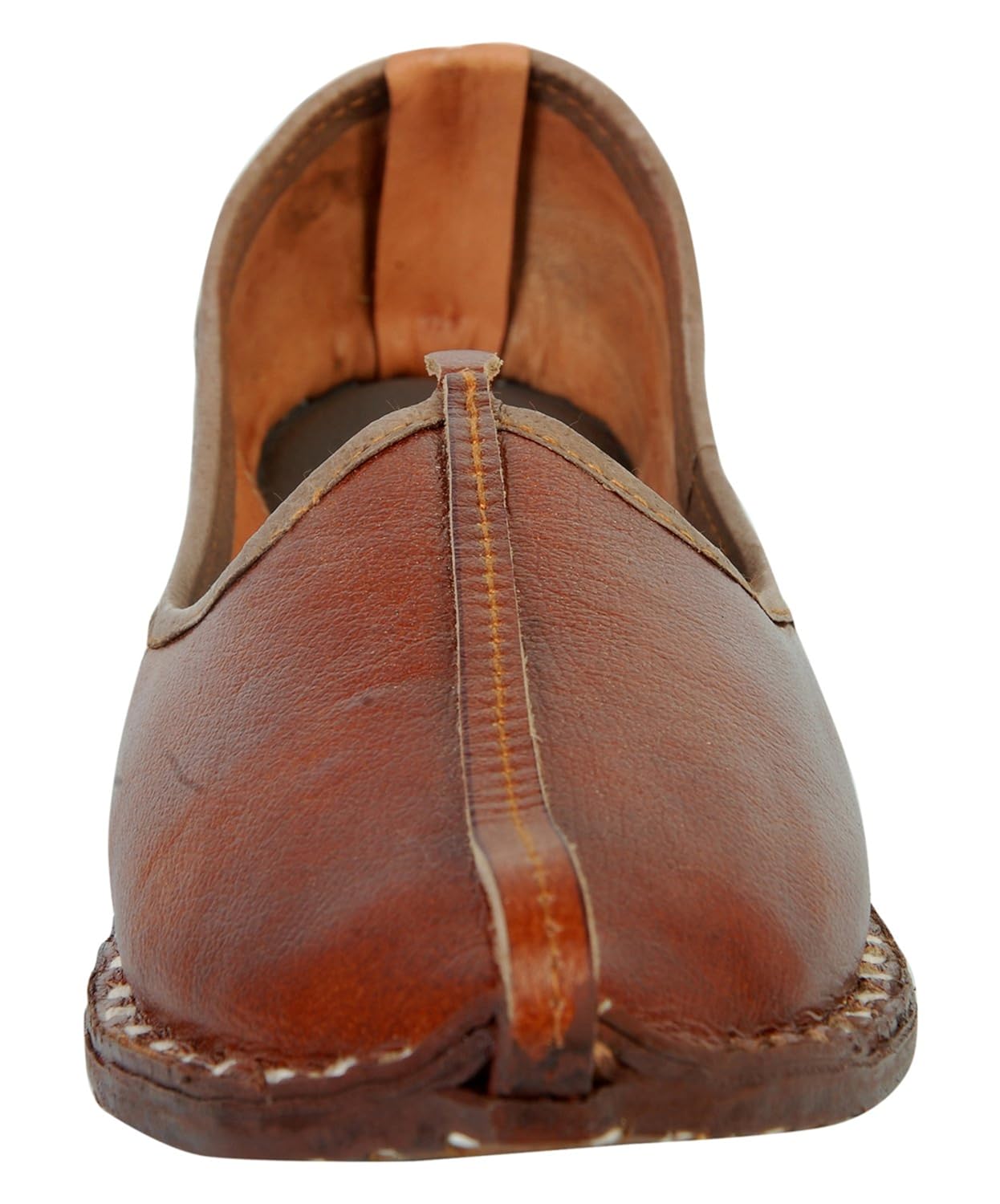 This product is made from leather on the inside and outside and is finished in an attractive brown color. It features leather sole, slip on closure, and are designed to be used as traditional wear footwear. |