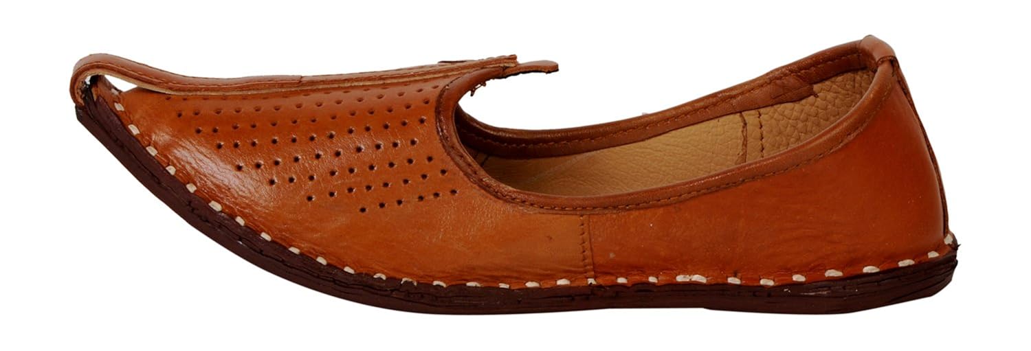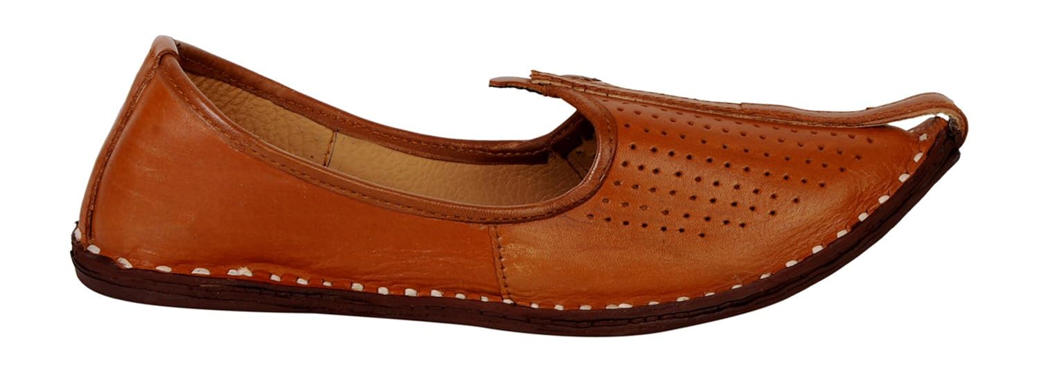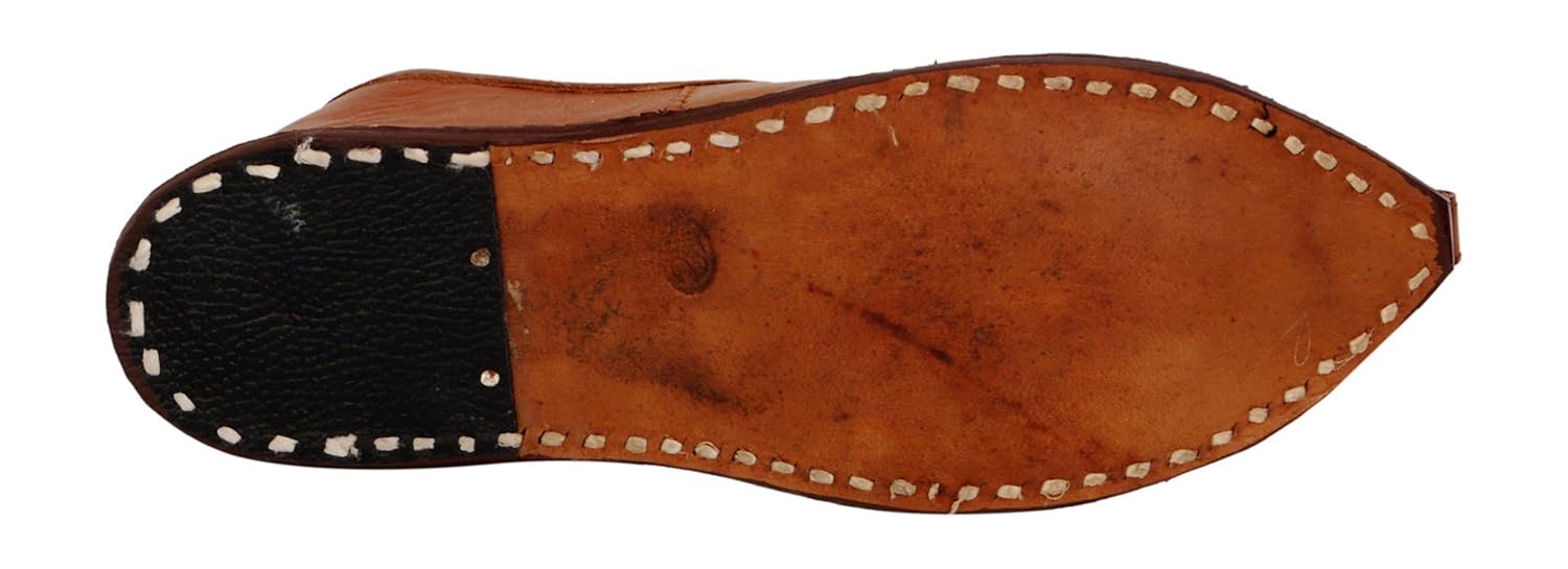 This product is made from leather on the inside and outside and is finished in an attractive brown color. It features leather sole, slip on closure, and are designed to be used as traditional wear footwear. |
