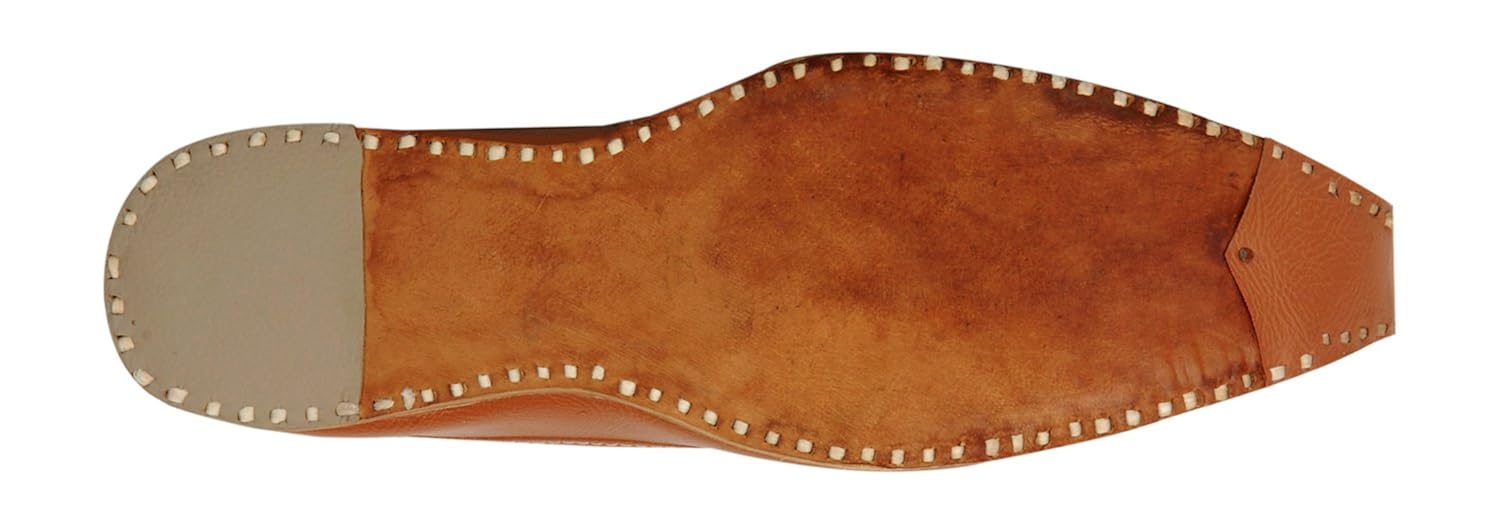 This product is made from leather on the inside and outside and is finished in an attractive brown color. It features leather sole, slip on closure, and are designed to be used as traditional wear footwear. |