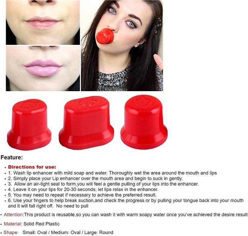 Kelley Hot Sale Super Sexy Lips Fuller Plumper Natural Enhancer 3 Sizes Oval Small Medium Large Round Beauty Makeup Plumping Device (Red)
