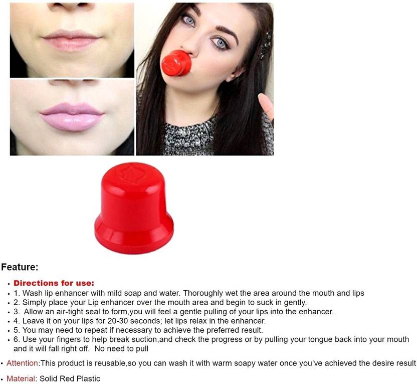Kelley Sexy Lips Fuller Plumper Natural Enhancer Round Size Beauty Makeup Plumping Device (Red)