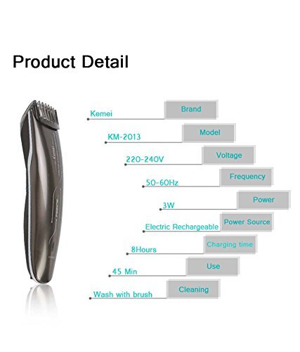 Kemei KM-2013 Professional Rechargeable Hair Trimmer Heavy Duty Gromming Set for Men, Women (MutliColor) What if we were to tell you that you can give yourself a salon-like shave at home? Sounds like a deal you are interested in? Get yourself this hair clipper set. Boasting of a full set of hair grooming accessories, this set will help you take control of all your trimming and shaving needs in a quick, efficient, safe, and cost-friendly manner. Looking your best and most groomed self couldn't get easier than this. It does require batteries You can give up worrying about power because it runs on batteries which works for couple of weeks because this appliance runs on rechargeable batteries. Multiple attachments You can make use of the whole lot of multiple attachments that come with the set to trim hair of different lengths. Adjustable blades The trimmer's free floating head allows for a fuss-free shave even in hard-to-reach areas. This feature also makes cleaning the appliance a lot more convenient. Rubber finish blades The blades in this appliance come with a rubber finish so they are not susceptible to rust and corrosion. Comb, oil, and attachments included The set also includes combs to cut off strays, a specially formulated oil to clean the blades, and a comb to brush and set the hair. Specifications General Sales Package Blades, Comb, Trimmer, Brush Model Number KM-2013 Model Name Rechargeable Hair Clipper Set For Men, Women Ideal For Men, Women |