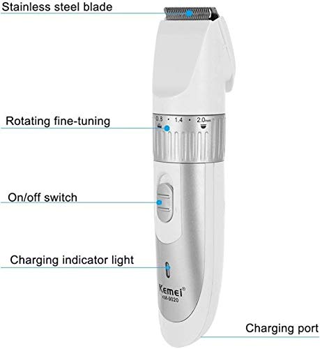 Insert amphibious filling you can plug the external power adapter to recharge the built-in power supply at the same time, it also can be used directly. Safe cutting head made of stainless steel, resistant to corrosion. Low noise design experiments prove that the blade is switched on in a certain environment noise. Powerful motor create high-velocity airflow through the hair chamber while trimming for maximum suction. |