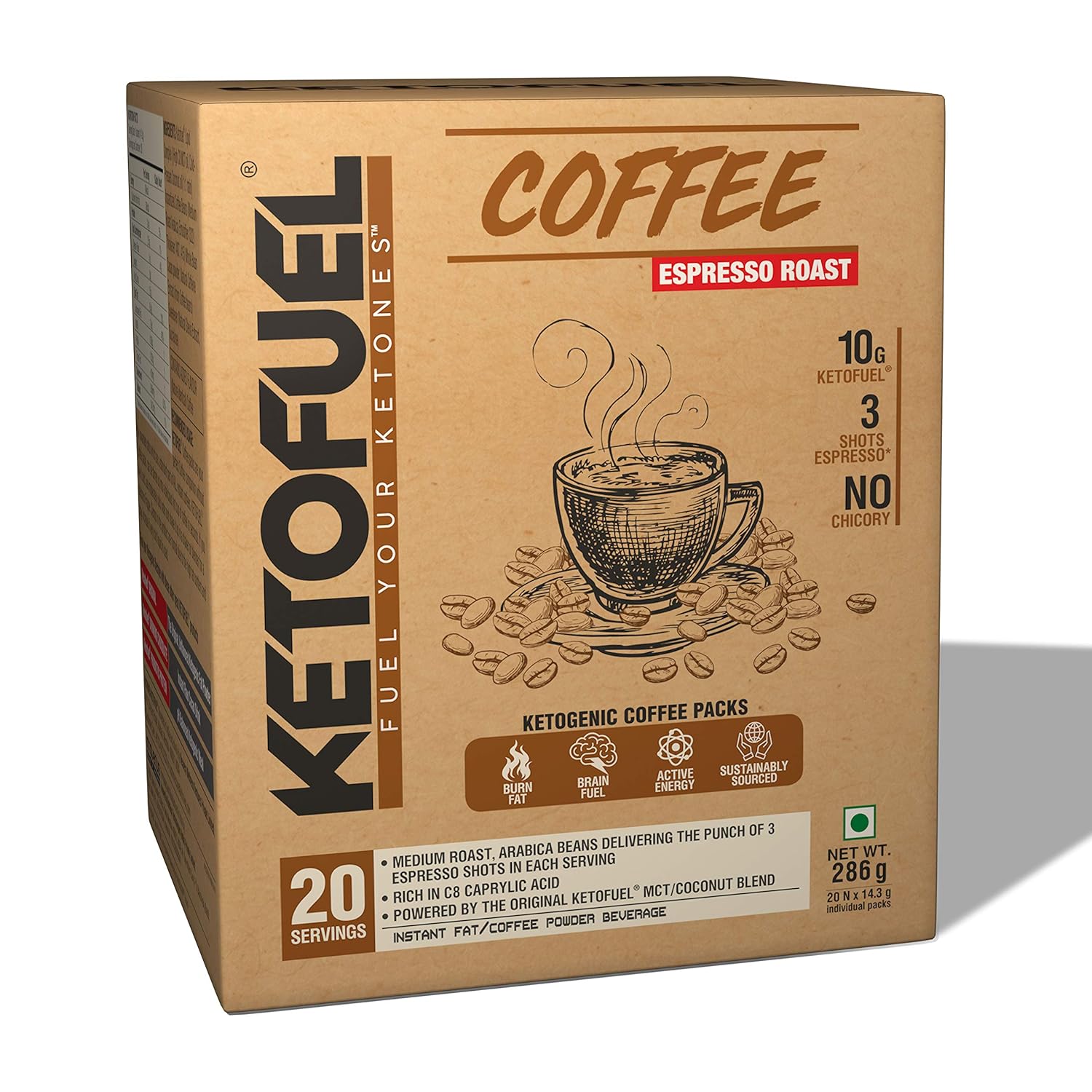 KETOFUEL COFFEE COLD BREW Espresso Keto Coffee Powder with Coconut & MCT Oil 20 pks w/Free Shaker
