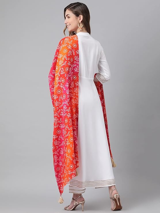Khushal K Women's Rayon Flared Kurta And Palazzo With Dupatta Set (White)