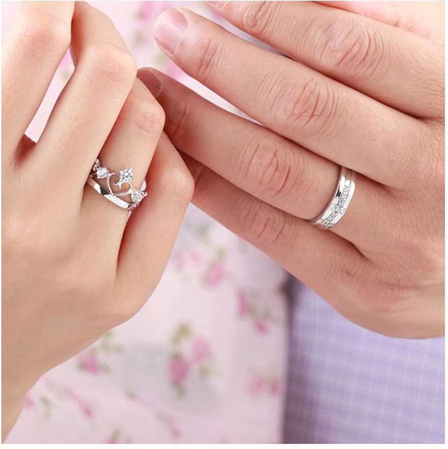 King Crown Queen And Cross Adjustable 925 Sterling Silver Plated Crystal Proposal |