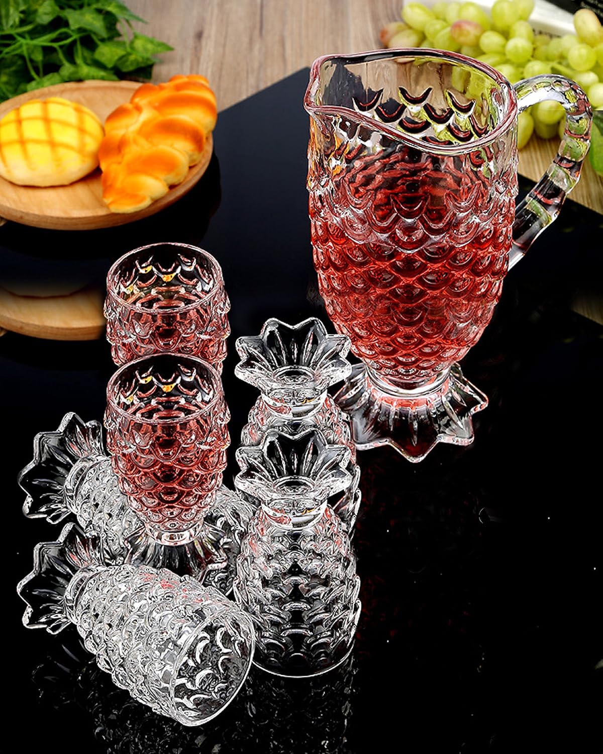 King International Crystal Glass 1 Jug (1.5 L) and Set of 6 Glass Pineapple Design (250 ml) Each