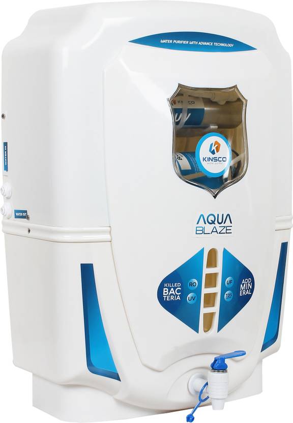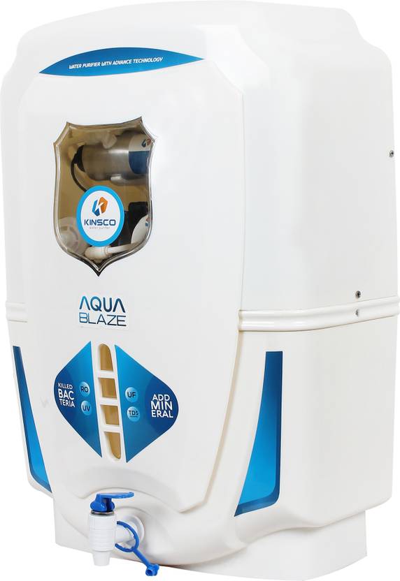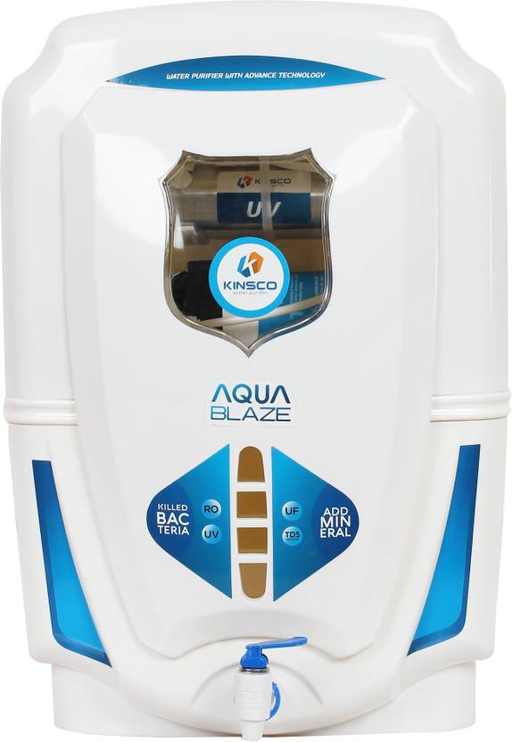 Kinsco Aqua Blaze Ro+Uv+Uf+Tds Adjuster Water Purifier WIth Prefilter Set(White) Specification: Filters: Sediment Filter, Activated Carbon Membrane: Ro Membrane, UF Membrane Pre Filter :- Removes Sediment Impurities from water. Sediment Filter - Removes Dust and Sediment Impurities From Water Carbon Filter - Removes Chlorine, Bromine and Odour From Water Ro Membrane - Removes Dissolved Impurities From Water UF Membrane - Removes Bacteria, Cyst From Water 11 Watt UV Lamp - Kills Bacteria And virus from water Flow Rate:- 15 L/hr