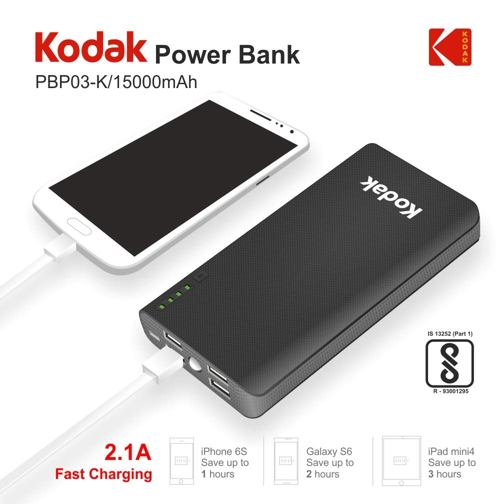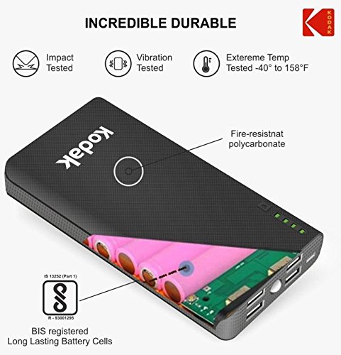 Made for use with smart phones, Kodak power bank is a high capacity power pack that provides 100 percent extra talk time to most smart phones. Product is BIS registered product warranty is 1 year as given. |