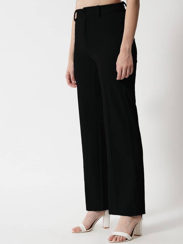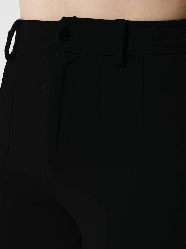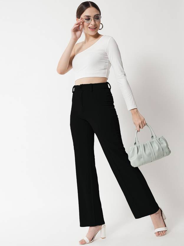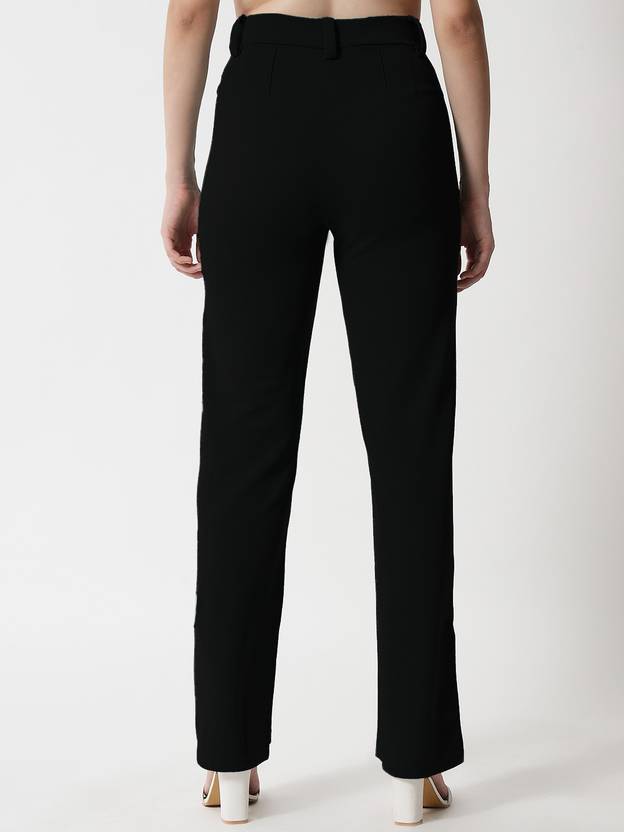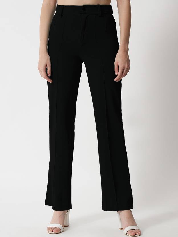 These women stylish black solid pant from kotty are perfect pick for you.We offer a wide range of good quality attractive imported regular length casual pant.these black straight fit pant are made with 98% polyester and 2% lycra fabric.Wear these solid high rise pant with top and heels depending on your preference.kindly ensure the size chart before buying.