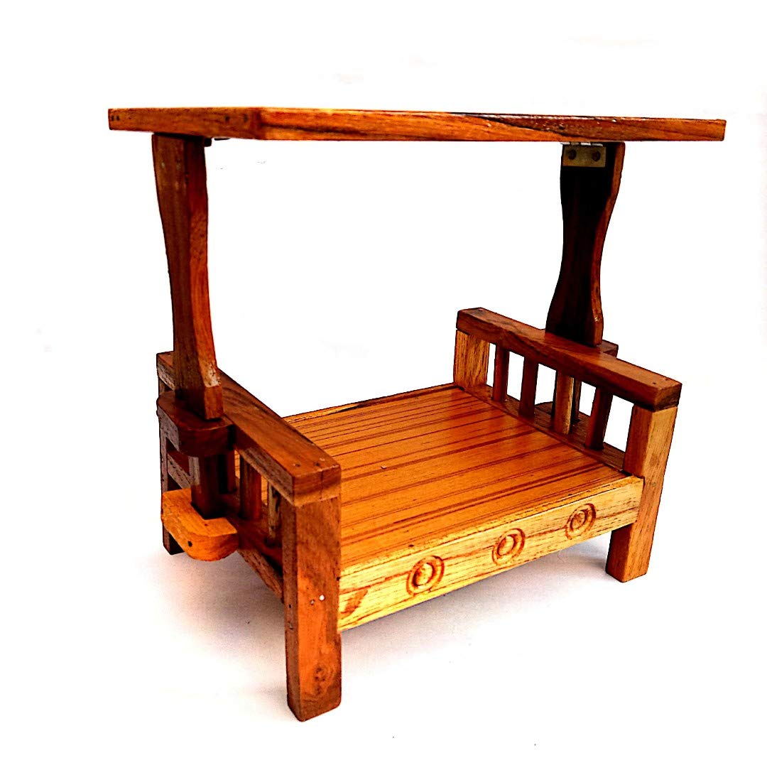 krishnagallery Laddu Gopal Wooden Bed with Mosquito Net, Brown