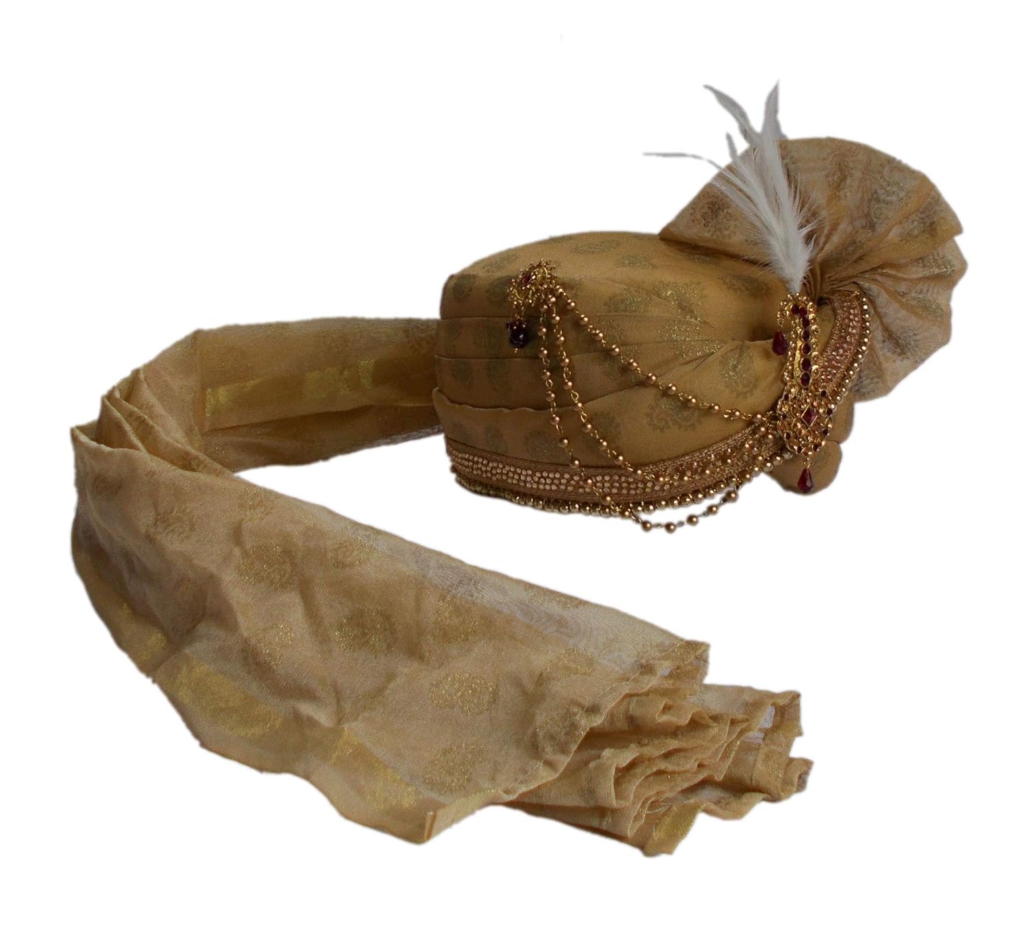 Krypmax presents this turban which is made of Ethnic cotton printed Fabric material. This elegant turban adds a classic touch to your ensembles. It is suitable to wear on ceremonial occasion and best for your event and a great fit. It is completely handmade and beautifully crafted using best material and stitching is done with excellence. It comes with tail also. A royal Maharaja look for Indian Wedding Groom. |