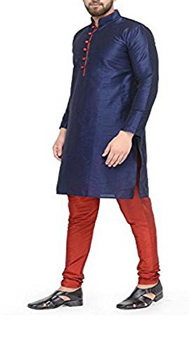 Look your ethnic best wearing this solid coloured kurta pyjama set for men from the fashion house of Larwa. Made from banarasi dupion, this regular-fit kurta pyjama set comprises a full-sleeved kurta and pyjama to complete your look. Team this outfit with embroidered mojris and rock the party that you attend. |