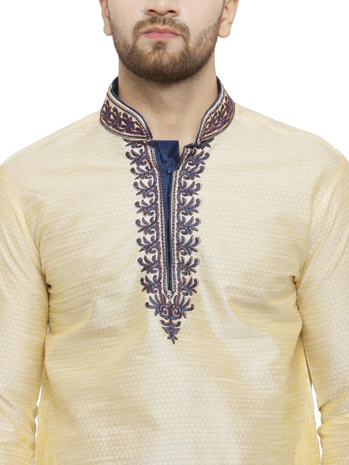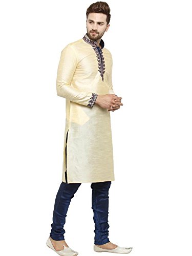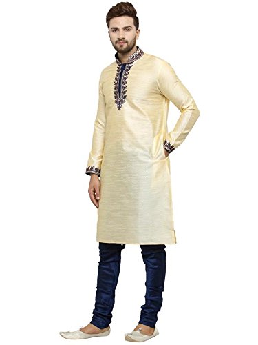 Look your ethnic best wearing this embroidery coloured kurta pyjama set for men from the fashion house of Larwa. Made from art silk dupion, this regular-fit kurta pyjama set comprises a full-sleeved kurta and pyjama to complete your look. Team this outfit with embroidered mojris and rock the party that you attend . The best thing about this set is that you can pair any jacket, dupatta or accessory with this set. The best thing about this set is that you can pair any jacket, dupatta or accessory with this set. Specifications |