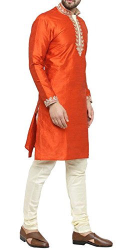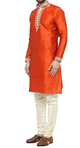Look your ethnic best wearing this embroidery coloured kurta pyjama set for men from the fashion house of Larwa. Made from art silk dupion, this regular-fit kurta pyjama set comprises a full-sleeved kurta and pyjama to complete your look. Team this outfit with embroidered mojris and rock the party that you attend . The best thing about this set is that you can pair any jacket, dupatta or accessory with this set. The best thing about this set is that you can pair any jacket, dupatta or accessory with this set. Specifications |