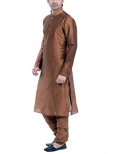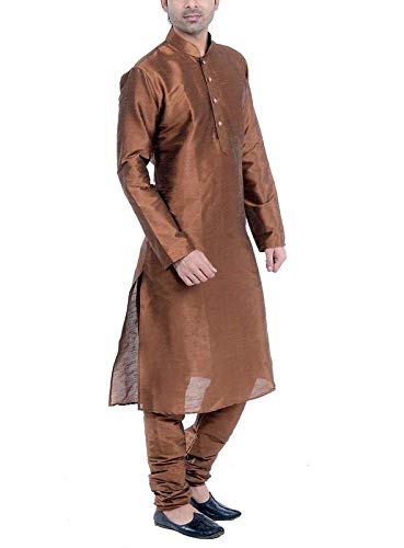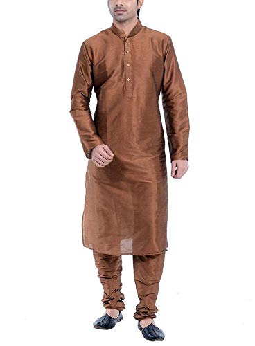 Look your ethnic best wearing this solid coloured kurta pyjama set for men from the fashion house of Larwa. Made from banarasi dupion, this regular-fit kurta pyjama set comprises a full-sleeved kurta and pyjama to complete your look. Team this outfit with embroidered mojris and rock the party that you attend. |