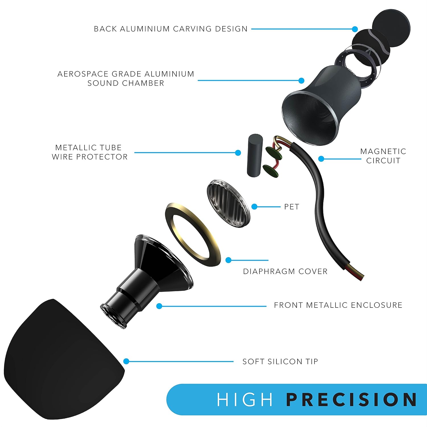 PREMIUM BUILD QUALITY- Metallic earbuds and premium Leather Finish Wire give these wired earphones an edge over others. The eartips come with an invisible Sweatproof nano coating and the 3.5 mm AUX is gold plated