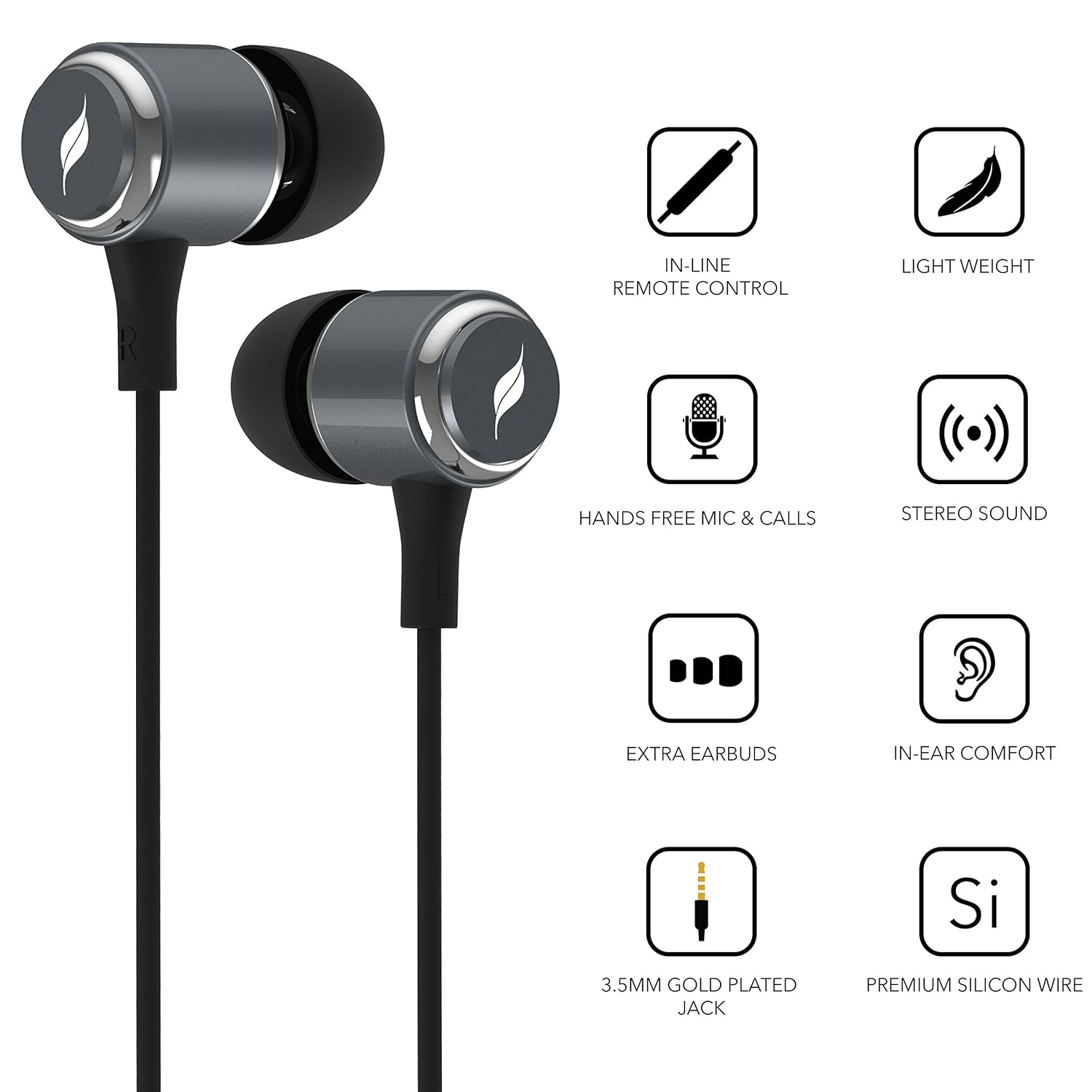 LEAF METAL Wired Earphones with Mic and In-Line Remote, boasts of a powerful 10 mm drivers for HD sound and our DEEP BASS technology lets you enjoy your favorite songs with better clarity. A speaker resistance of 16 Ohm & sensitivity range of 101dB (+/- 3dB) minimizes any distortion of sound quality and that's why you are guaranteed an unbelievable audio experience.