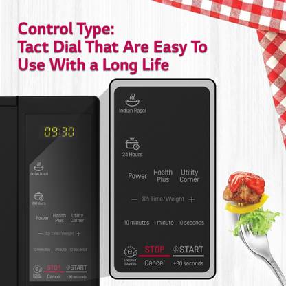 Featuring a quartz heater located on top of the cavity, this 20 L microwave oven from LG heats your food quickly and lets you prepare breakfast or dinner easily. With features such as Auto Cook Menu, Anti-bacteria Cavity, and Intellowave Technology, the dishes you cook are healthy and tasty.