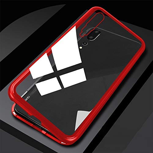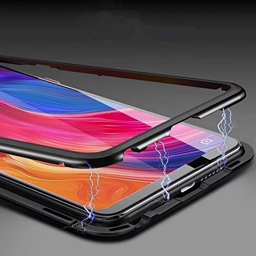 Livix™ Magnetic Adsorption Metal Bumper Tempered Glass Clear Shockproof Full Cover Case for Vivo X21i (Red)