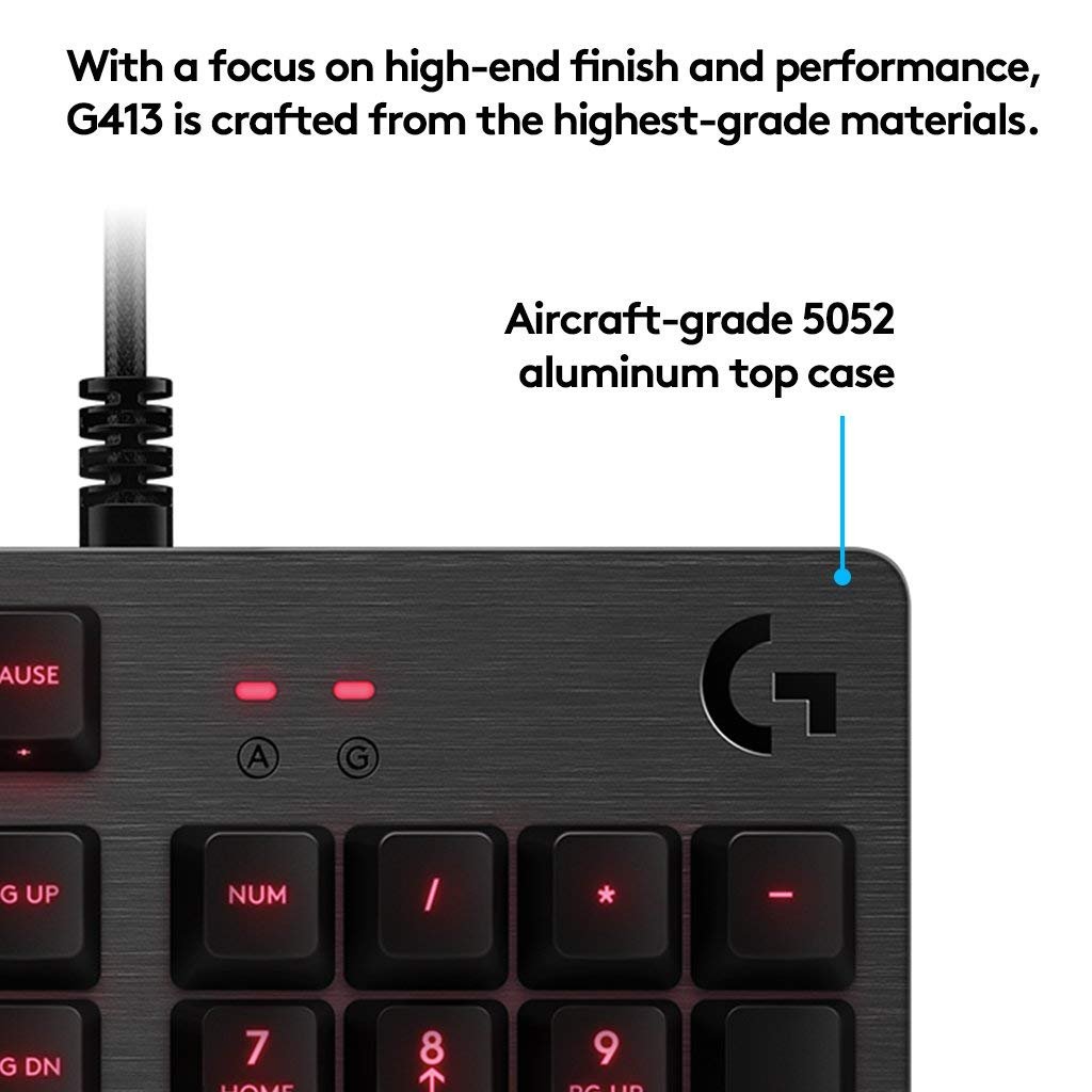 G413 Mechanical Backlit Gaming Keyboard delivers unrivalled performance, technologies and features in a thoughtfully balanced design. Featuring Romer-Gswitches, G413 provides unparalleled speed, responsiveness and durability. |