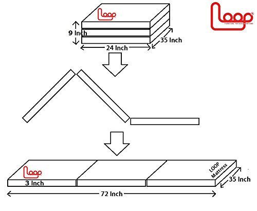 Product Dimensions: Length (72 inches), Width (35 inches), Height (3 inches). Weight approx 3.3 Kgs. Suitable for single bed. Dimensions When Folded: 35 x 24 x 9 Inch.