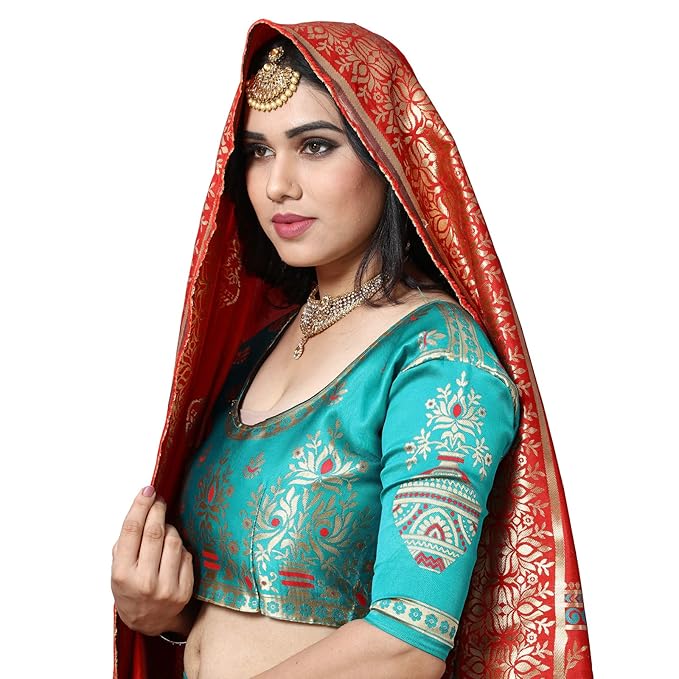 MANSVI FASHION women's Banarasi silk Jacquard lehenga choli (free size and semi-stitched).