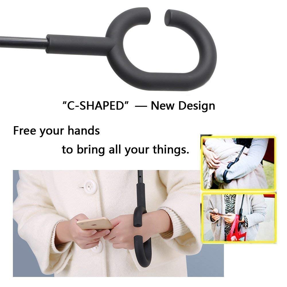 Comfortable Frosted C-shaped hand Grip Design: Cross the C-shaped handle over your arm, made your hands free for holding a baby, bag or mobile in the rain.