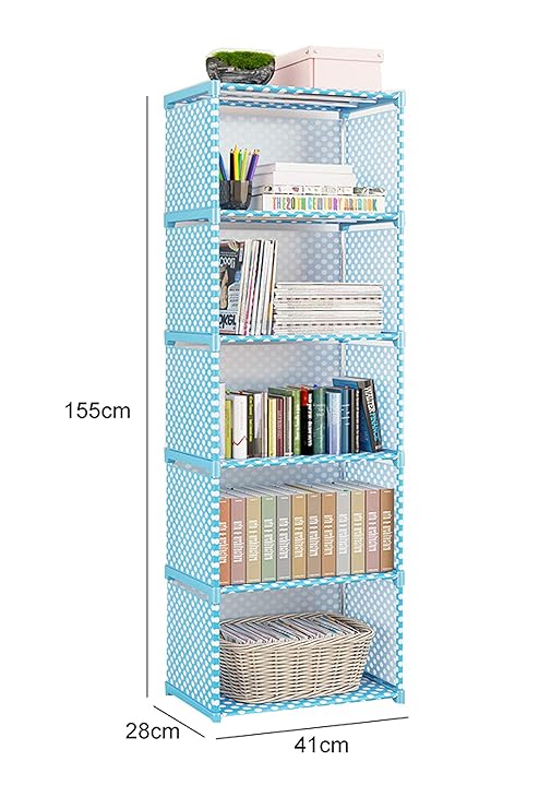 MemeHo® Bookshelf| Storage Shelve for Books Storage Organizer|Children Book Rack| Bookcase for Home Furniture |Cabinet Shelves for Bedroom Office Living Room (4 Cases, Blue)(Alloy Steel,Plastic)