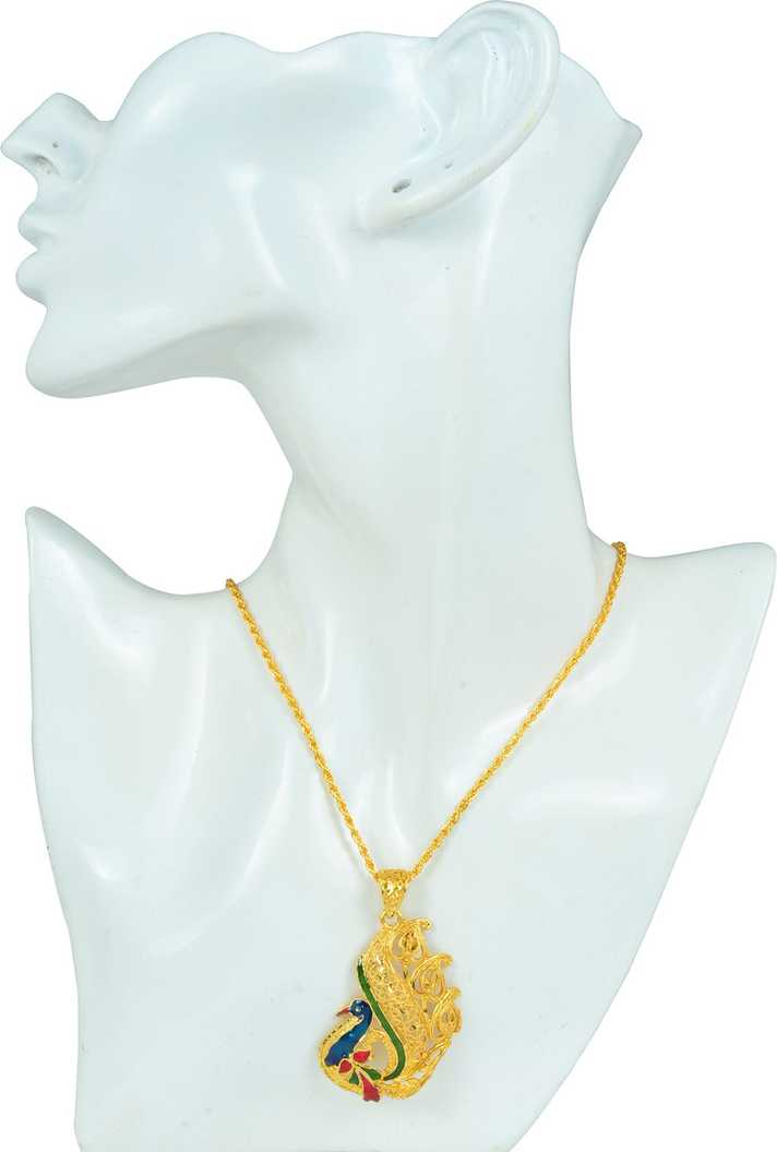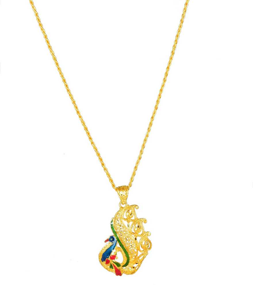 Memoir Gold plated CZ and Meenakari Peacock Pendant with matching earrings Diwali special jewellery for Women |