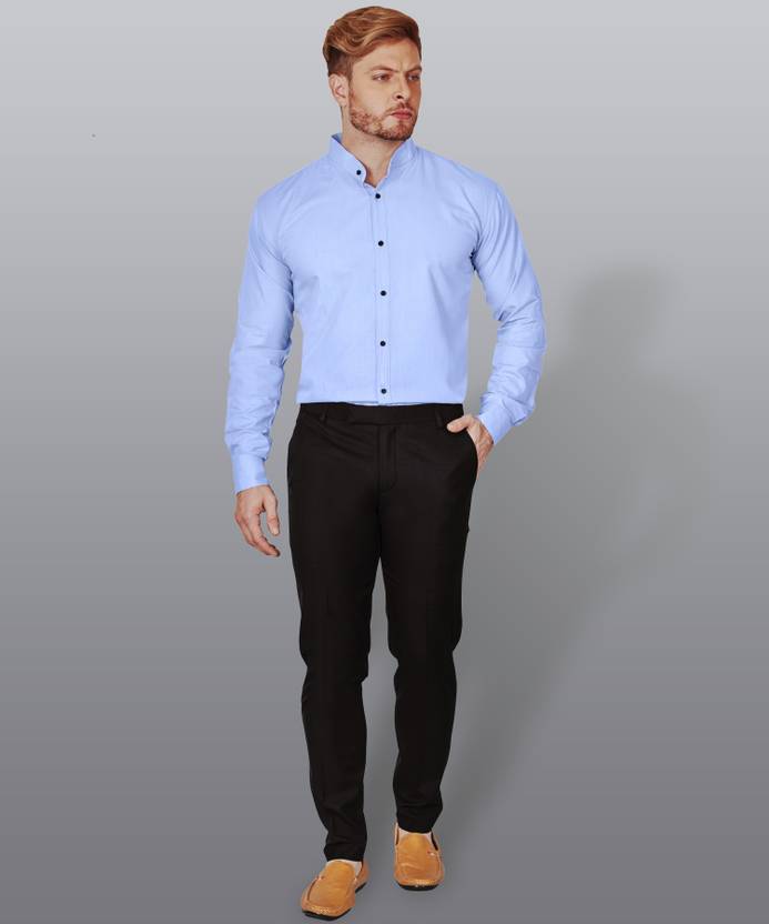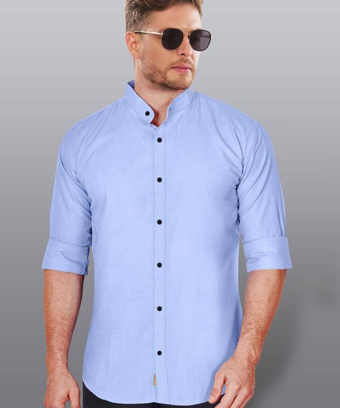 Men Regular Fit Solid Mandarin Collar Formal Shirt