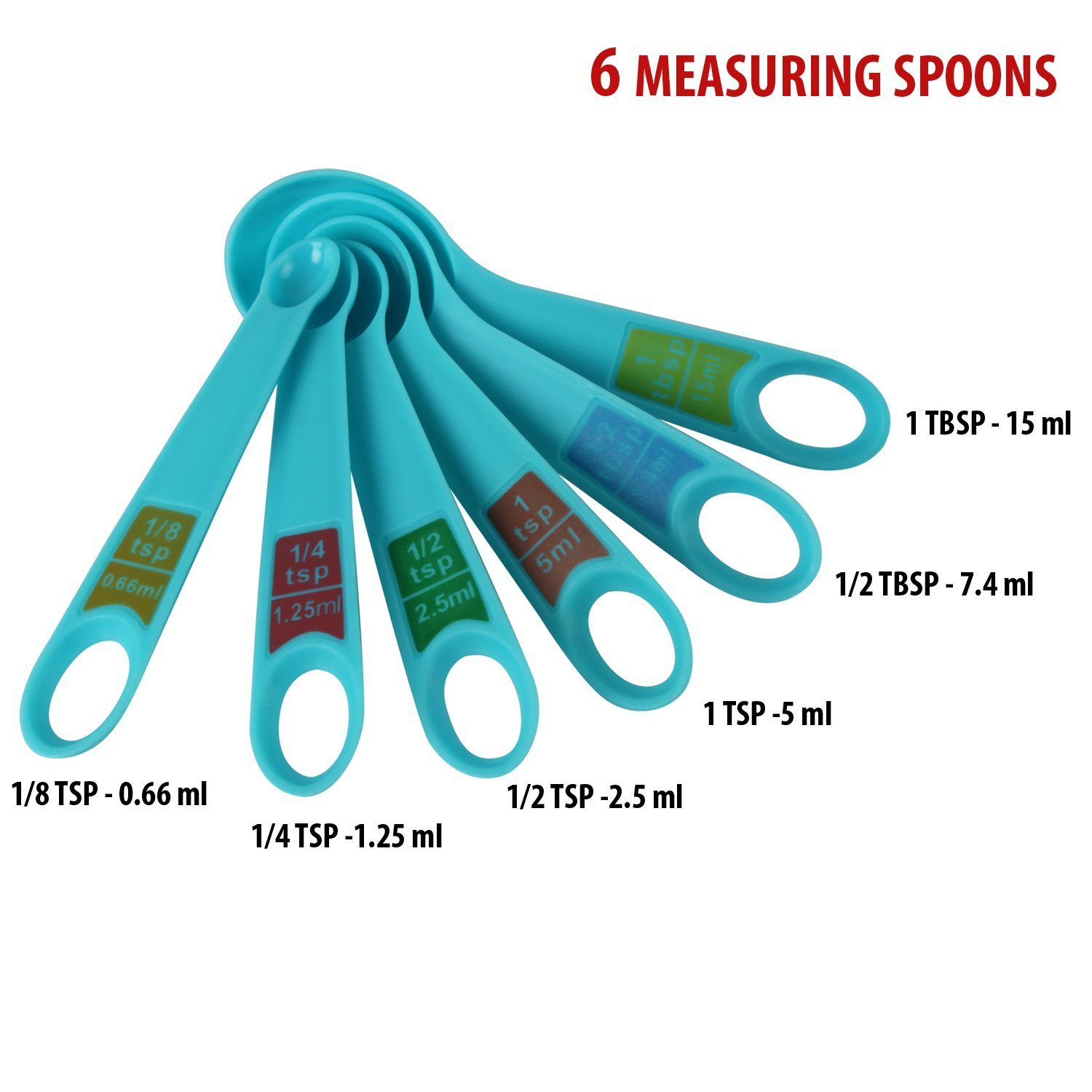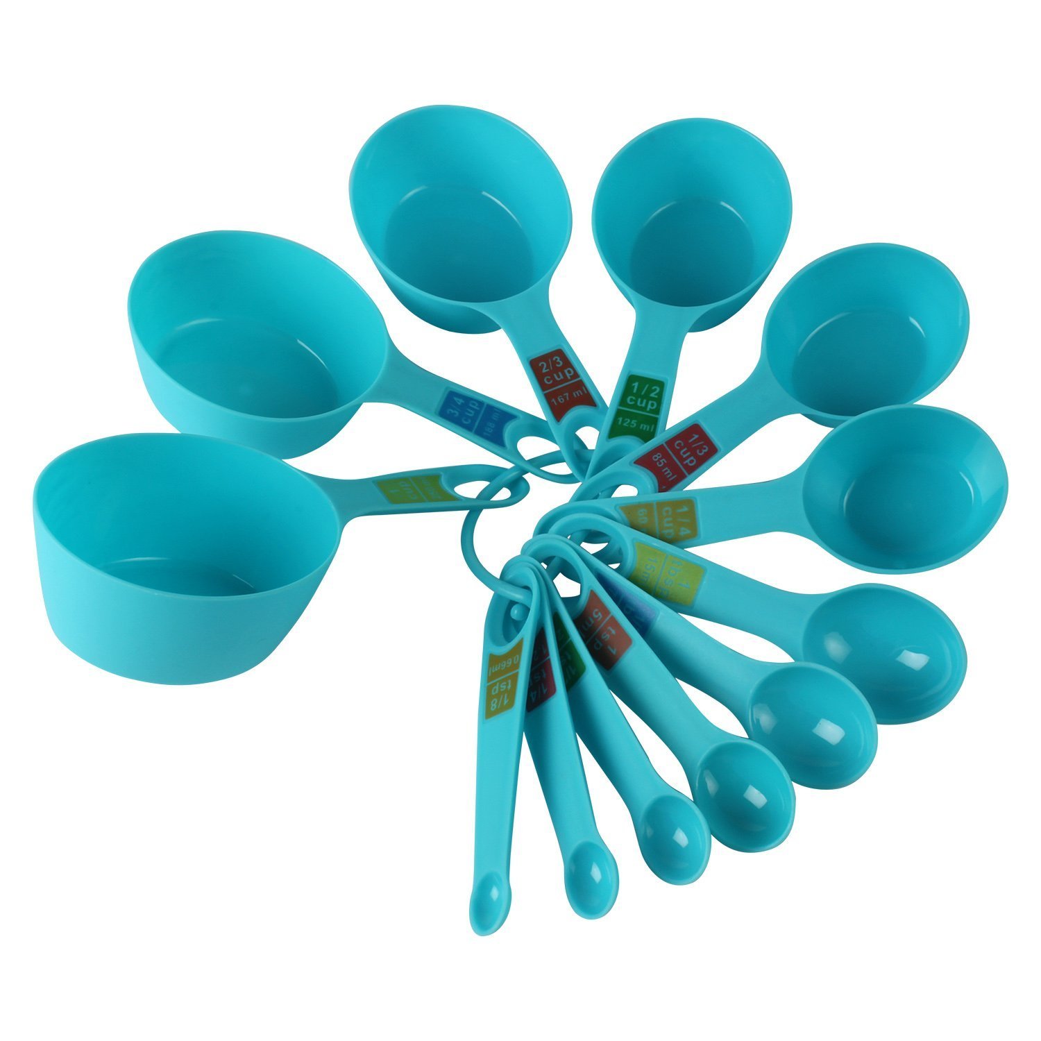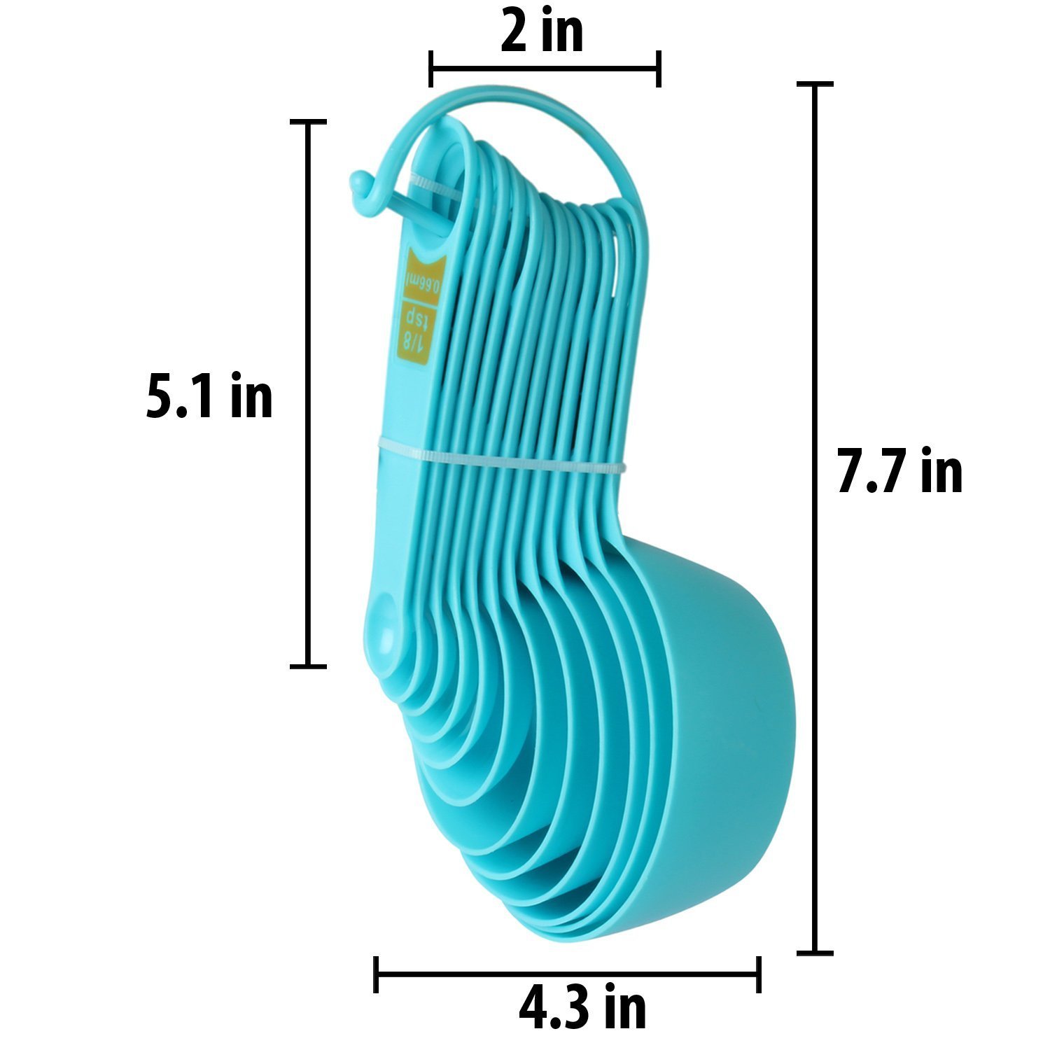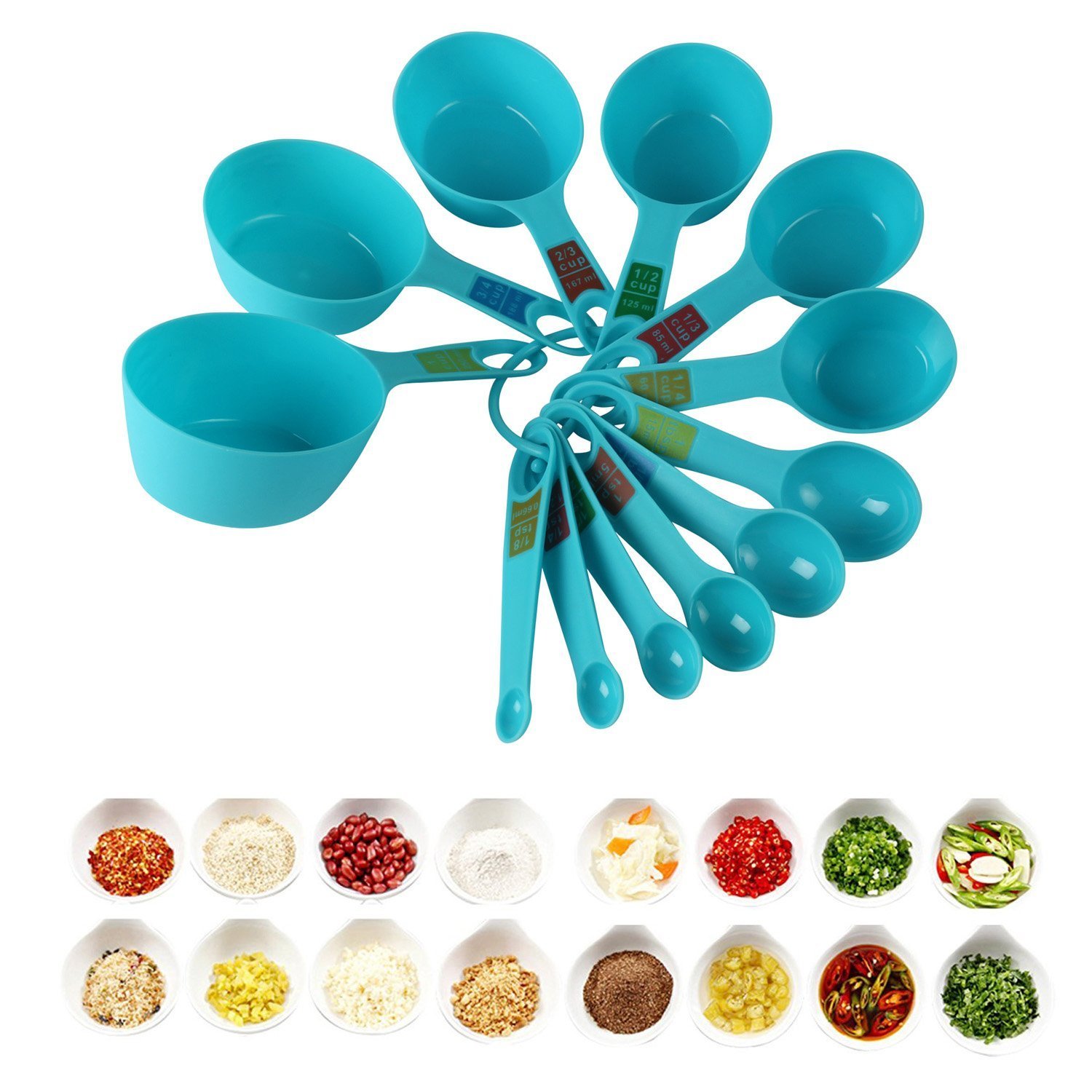 MeRaYoTM Plastic Measuring Cups And Spoon Set With Ring Holder, 12 Piece Set (Blue Color)