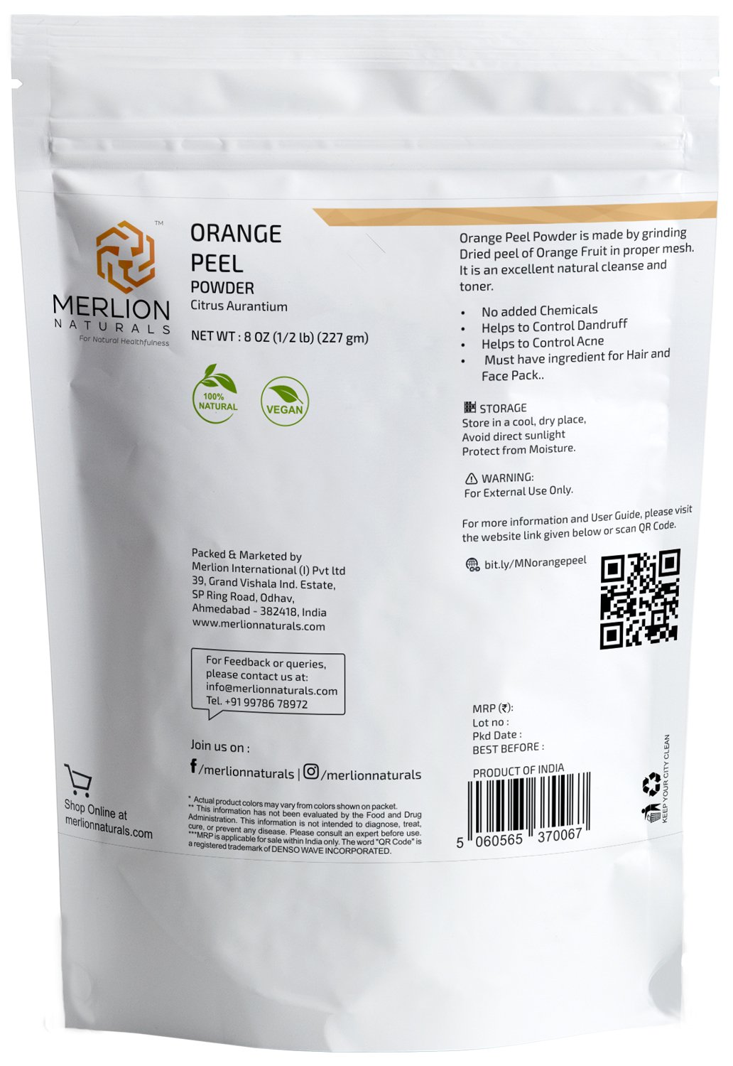 Merlion natural's orange peel powder is all natural, non gmo, vegan and without chemical additives