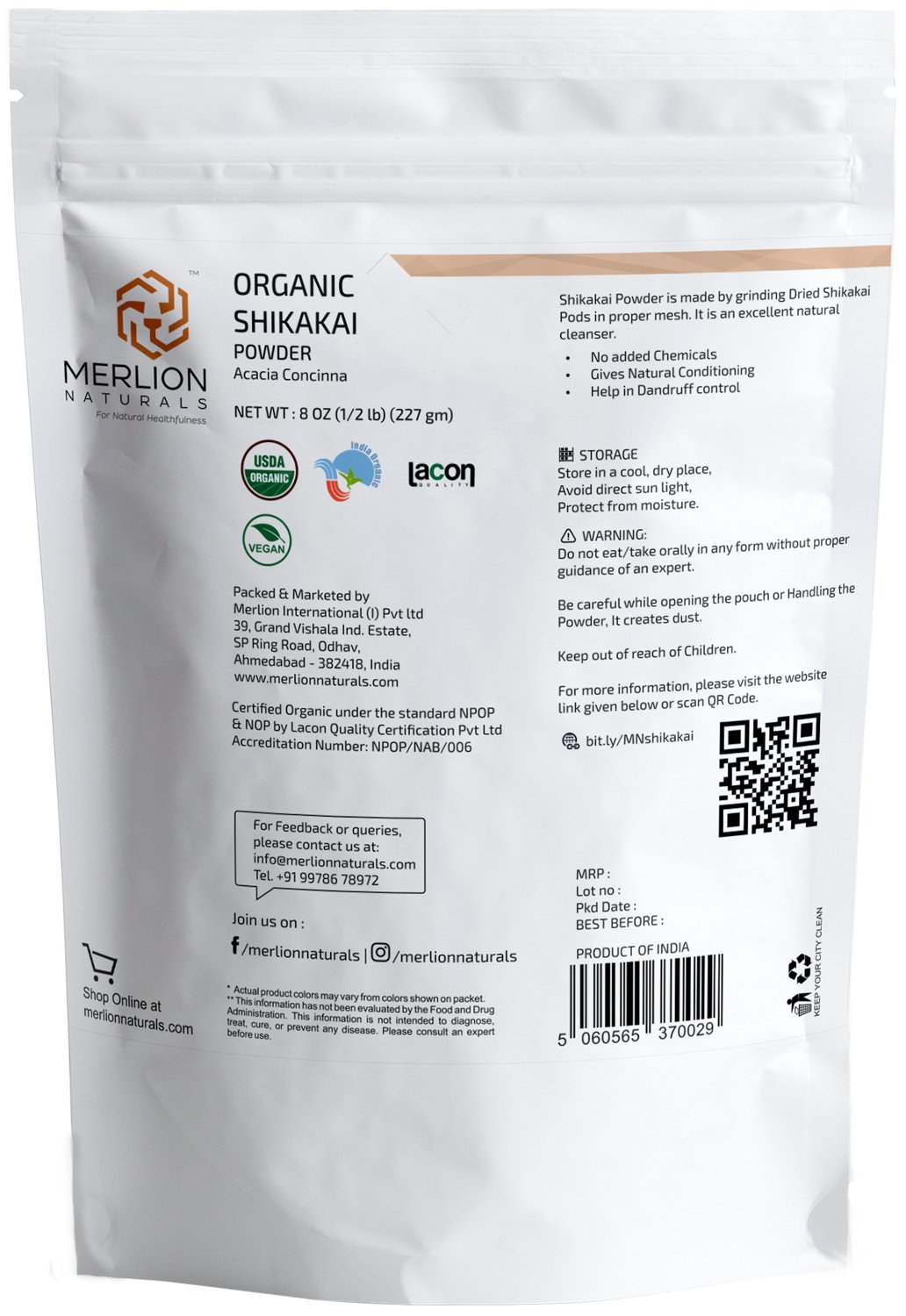 Produced and Packed in India. It is packed in resealable zipper pouch for ease of use.